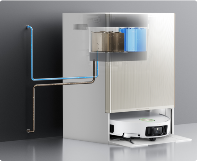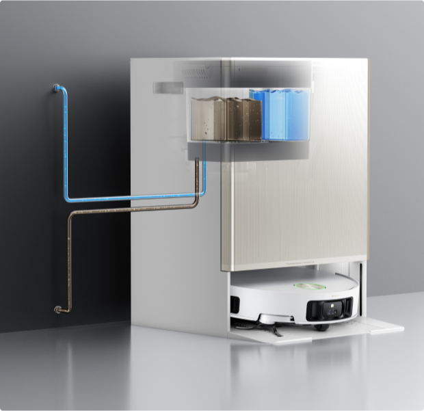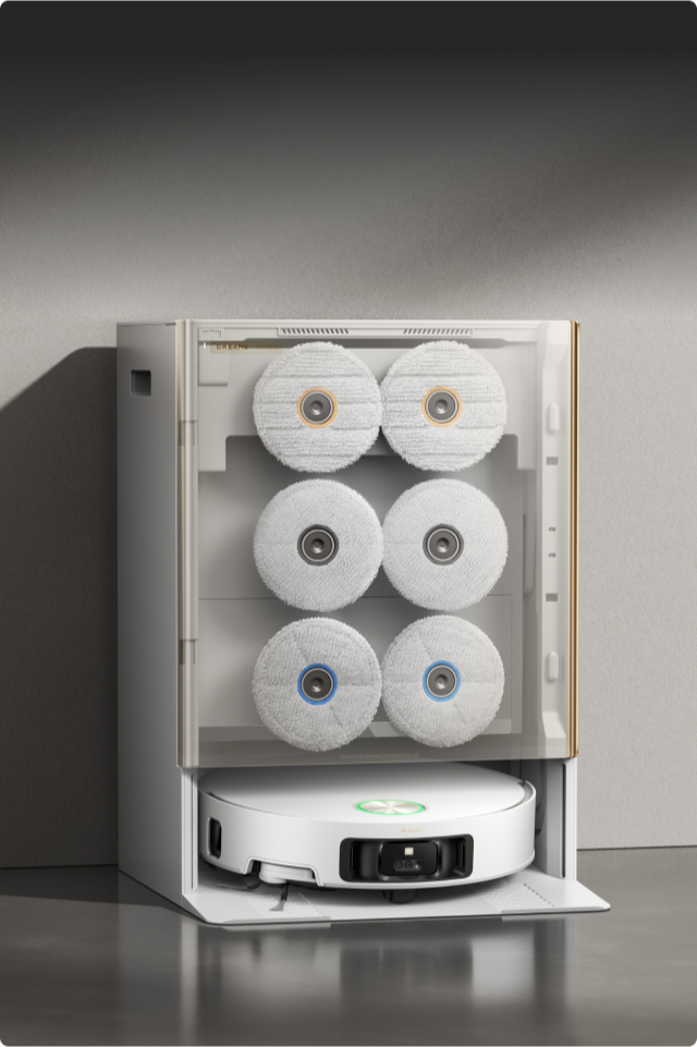 *Il rilavaggio di moci e pavimenti è disponibile quando l'utente la imposta in modalità CleanGenius™ nell'app di pulizia.