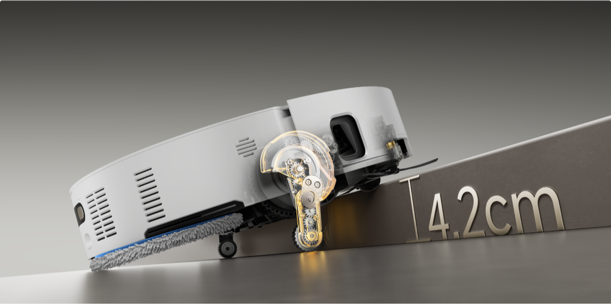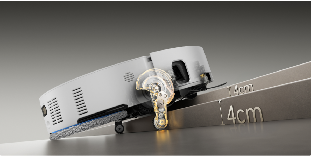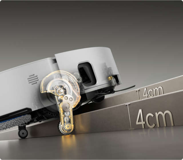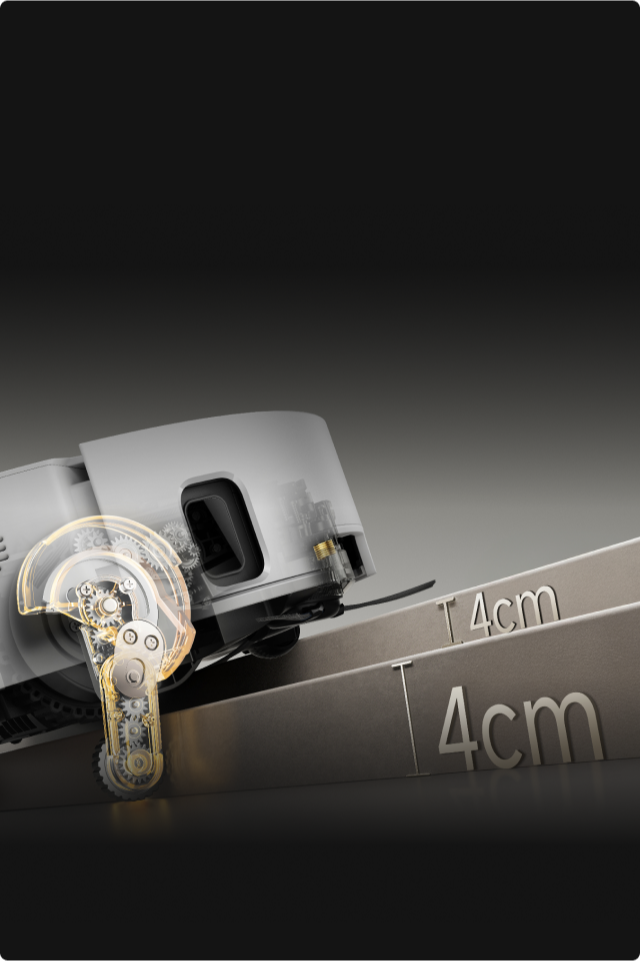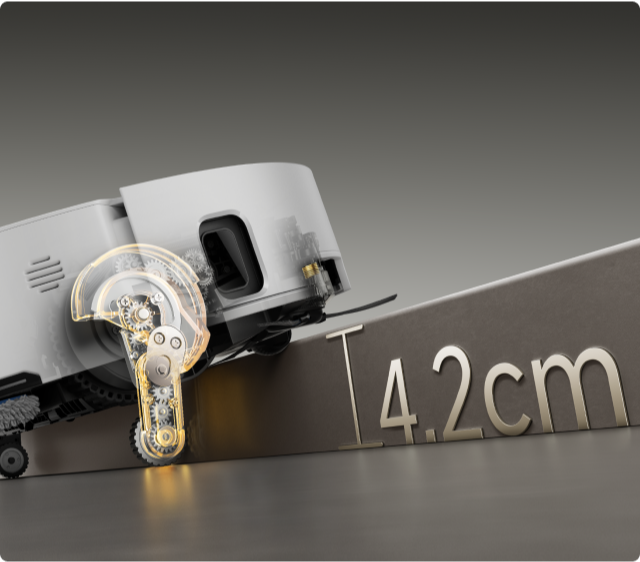 *8 cm, 4 cm: si riferisce all'altezza del gradino a doppio livello, dove la superficie del gradino inferiore è larga oltre 12 cm, quando l'aspirapolvere robot utilizza le gambe retrattili nella modalità di superamento degli ostacoli avanzato. Per un gradino singolo, l'altezza massima è di 4,2 cm. In base ai dati del nostro laboratorio interno. Le prestazioni effettive possono variare.