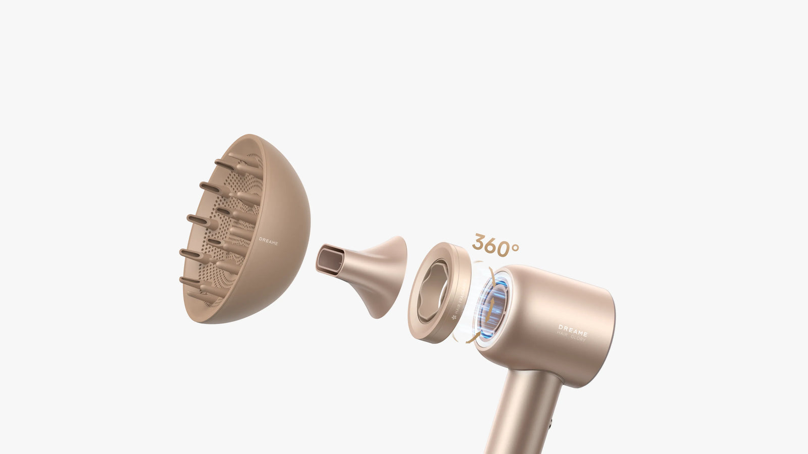 Hair Glory Mix semplifica il processo di asciugatura grazie alle bocchette magnetiche intercambiabili pensate per diversi tipi di capelli ed esigenze, tra cui una bocchetta lisciante, un diffusore e un'esclusiva bocchetta per il profumo.