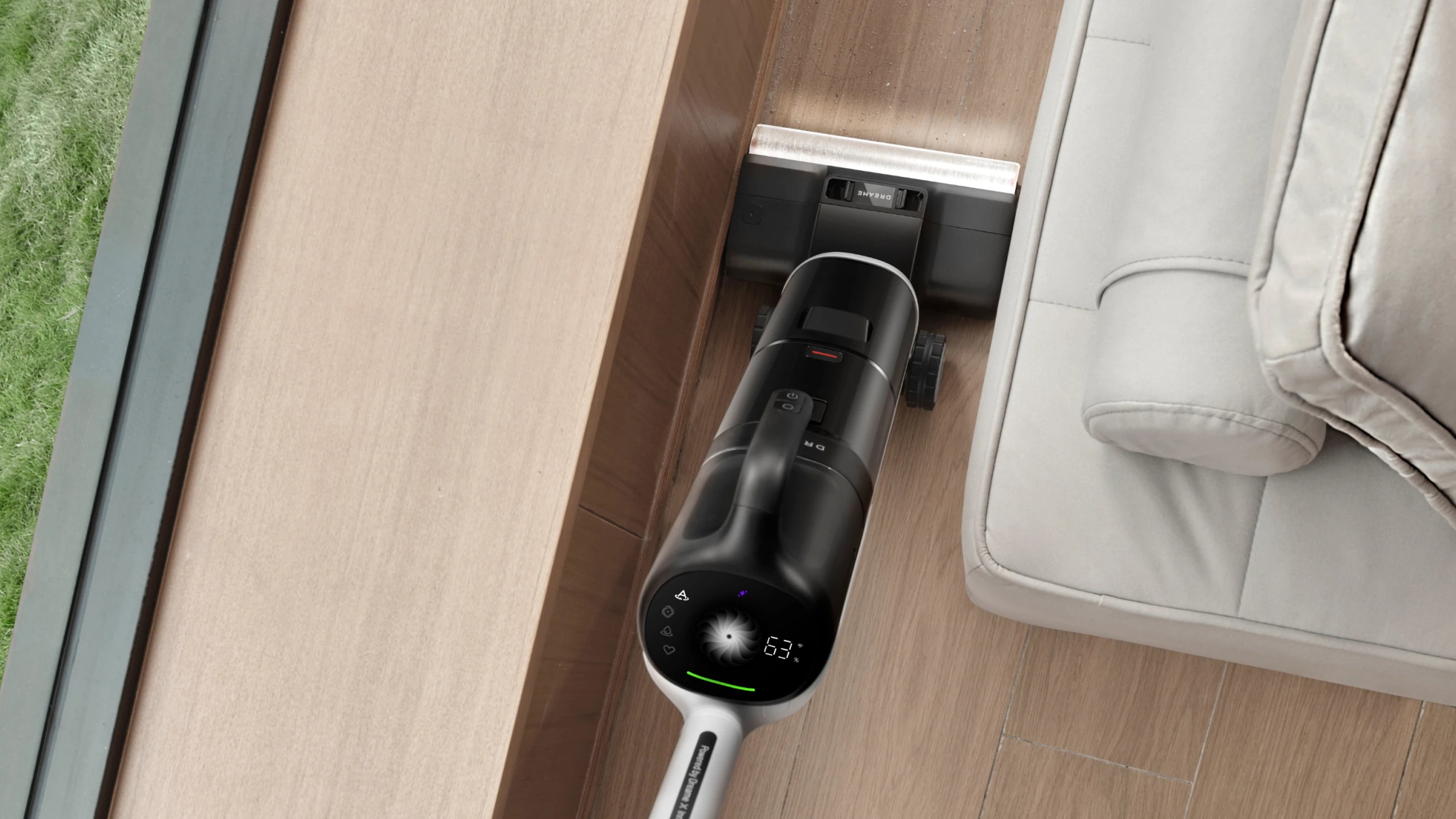 *180°, 14 cm, 9,8 cm: tutto il corpo dell'aspirapolvere può entrare in spazi alti 14 cm, mentre la spazzola può infilarsi in fessure alte 9,8 cm. In base ai dati del nostro laboratorio interno, quando l'aspirapolvere è in posizione orizzontale, l'impugnatura del motore si trova a 18 cm di distanza dal suolo.