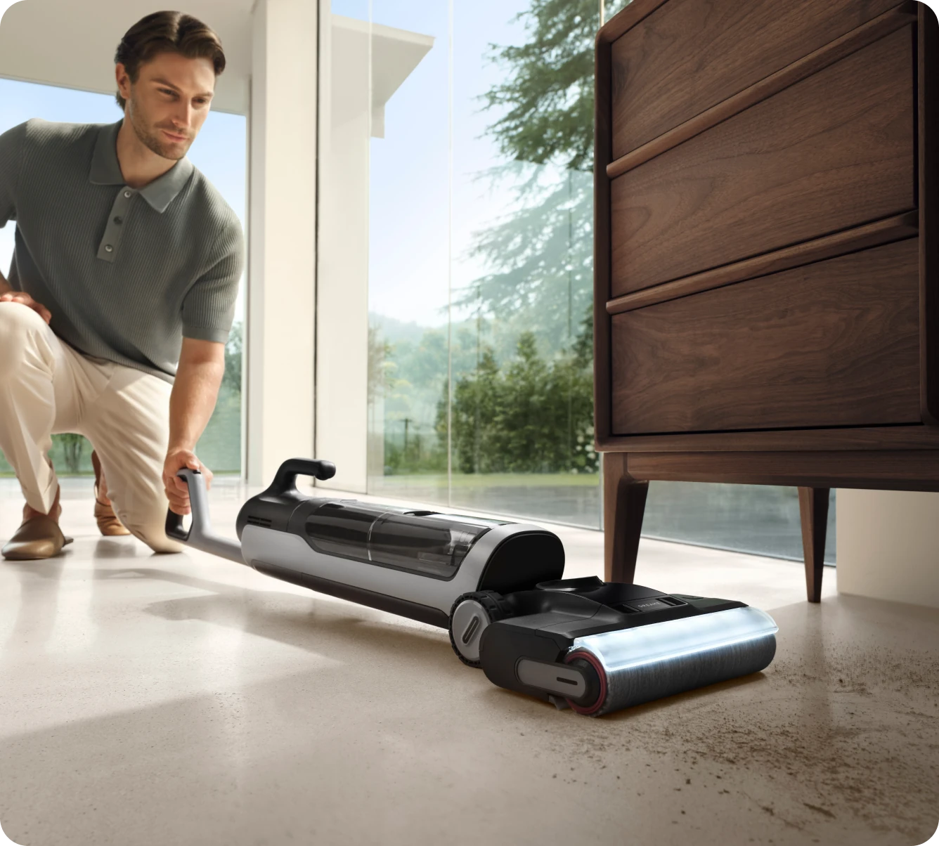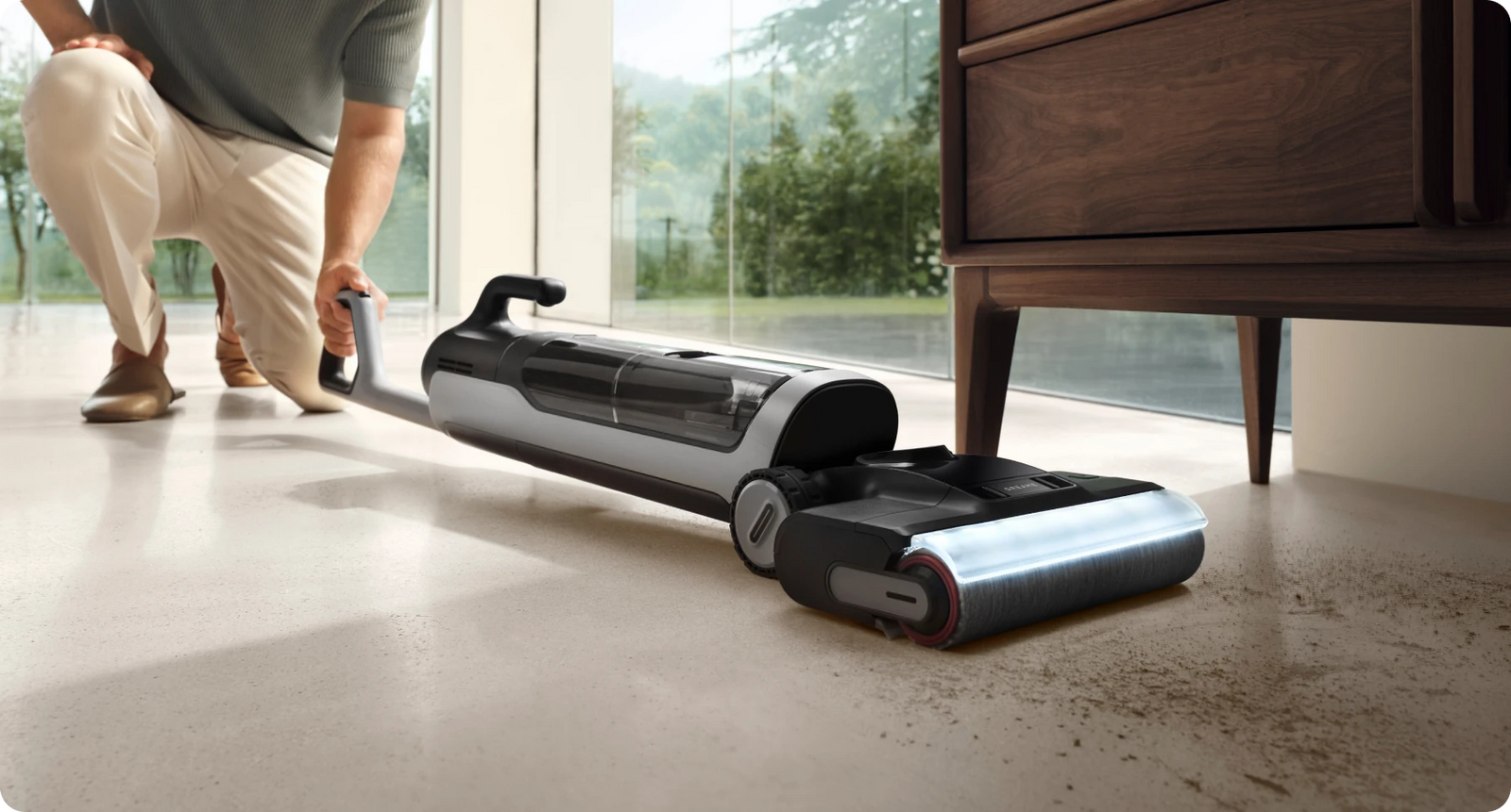 Il design piatto a 180°* ti aiuta ad eliminare le macchie sotto i mobili bassi