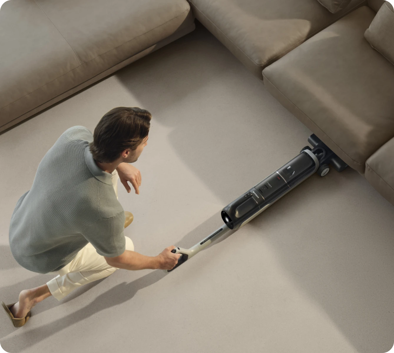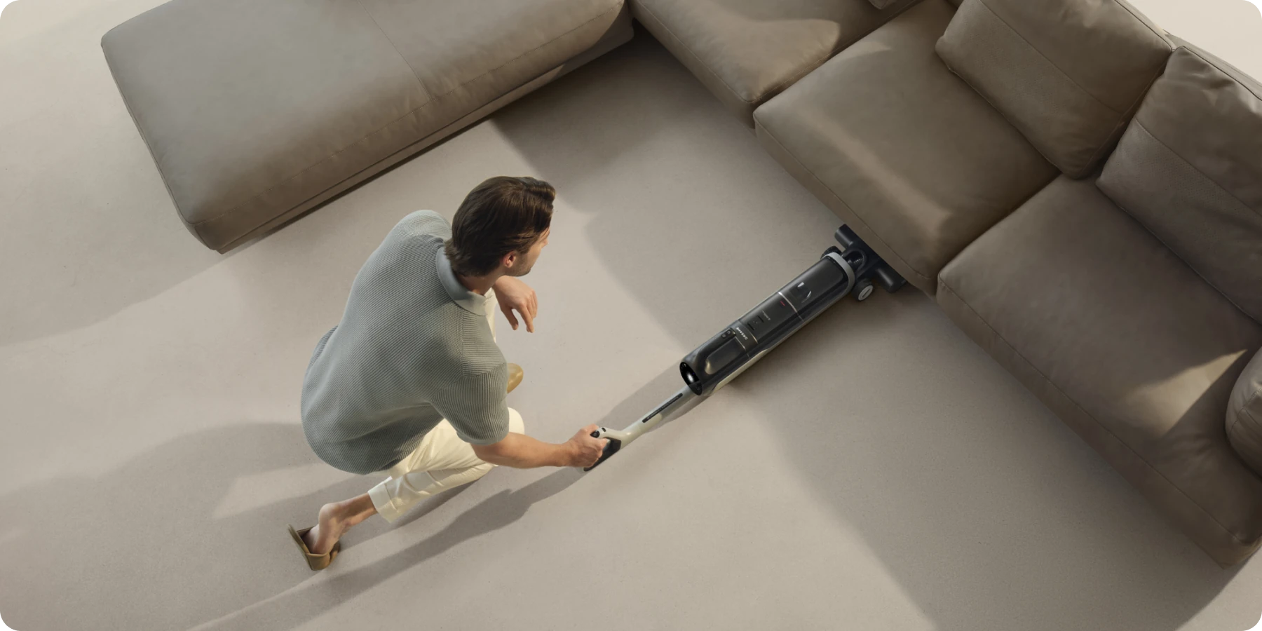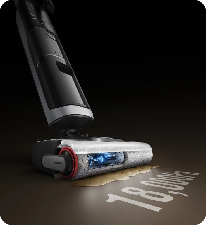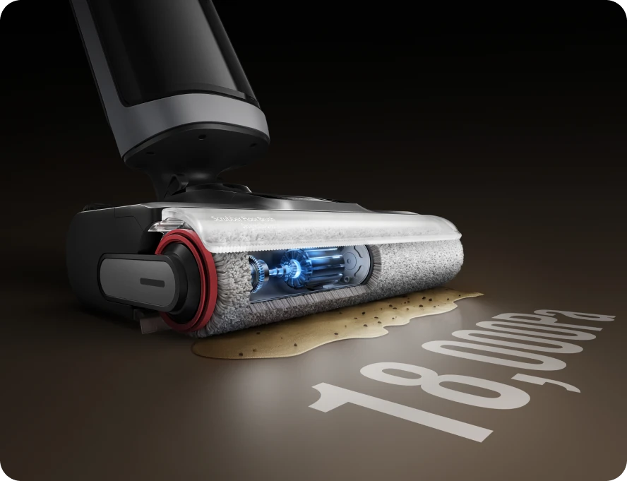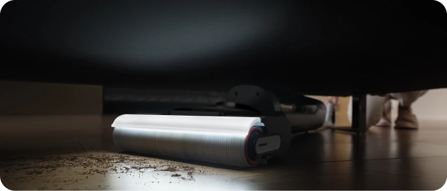 Design piatto a 180°. Pulisce accuratamente sotto i mobili e in spazi ristretti con un'aspirazione senza uguali da 18 kPa.