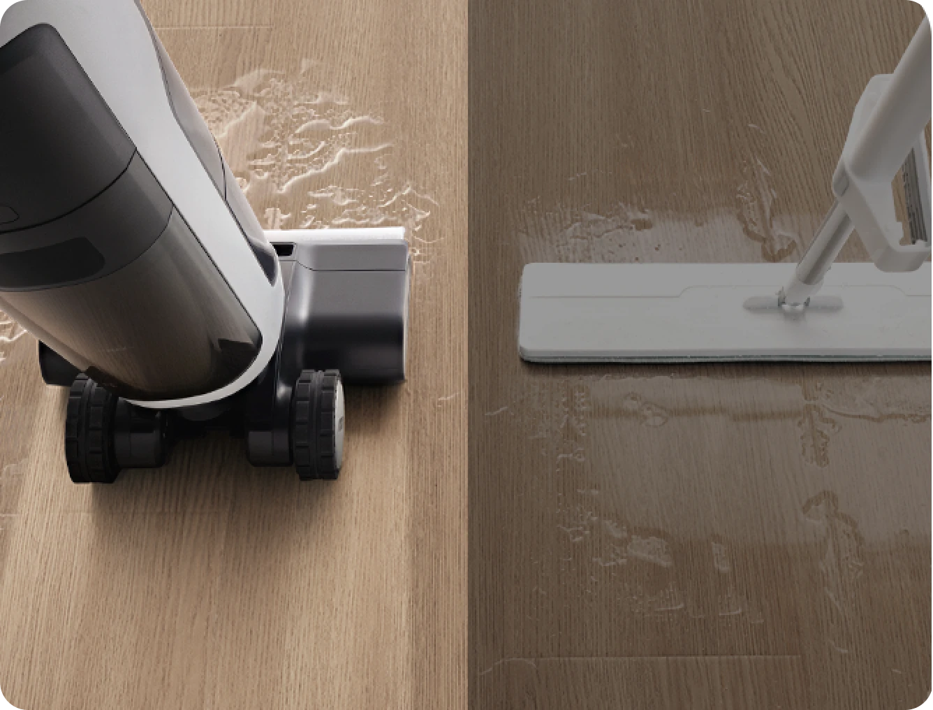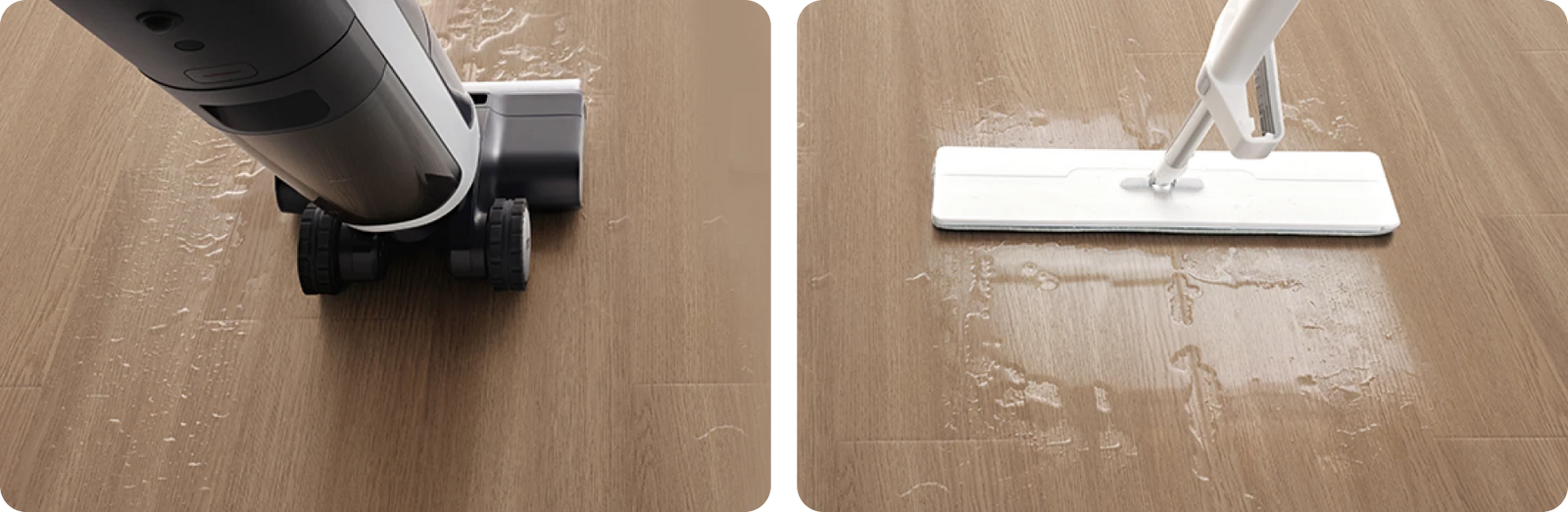 H14 Dual offre una pulizia accurata che non lascia aloni d'acqua per proteggere i pavimenti. Il lavaggio tradizionale può provocare la formazione di muffa, odori, rigonfiamenti e deformazioni dei pavimenti in legno.