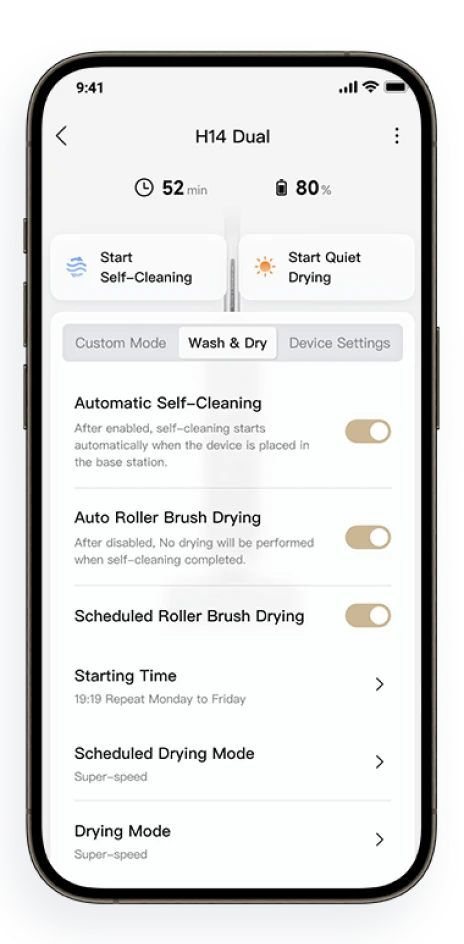 *Spazzola asciutta al 100%: dopo il normale utilizzo, posiziona la spazzola bagnata sulla base per un'auto-pulizia profonda e, al termine del ciclo di asciugatura, la spazzola è asciutta al 100%, in base ai dati del nostro laboratorio interno. Rapporto n.: ZMX-240625-009-4