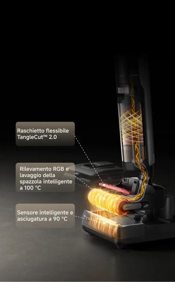 *100 °C: la temperatura al di sopra del sistema di riscaldamento PTC ha raggiunto i 100 °C, sulla base delle condizioni rilevate nei nostri test di laboratorio interni. La temperatura dell'acqua e le prestazioni di pulizia effettive possono variare.