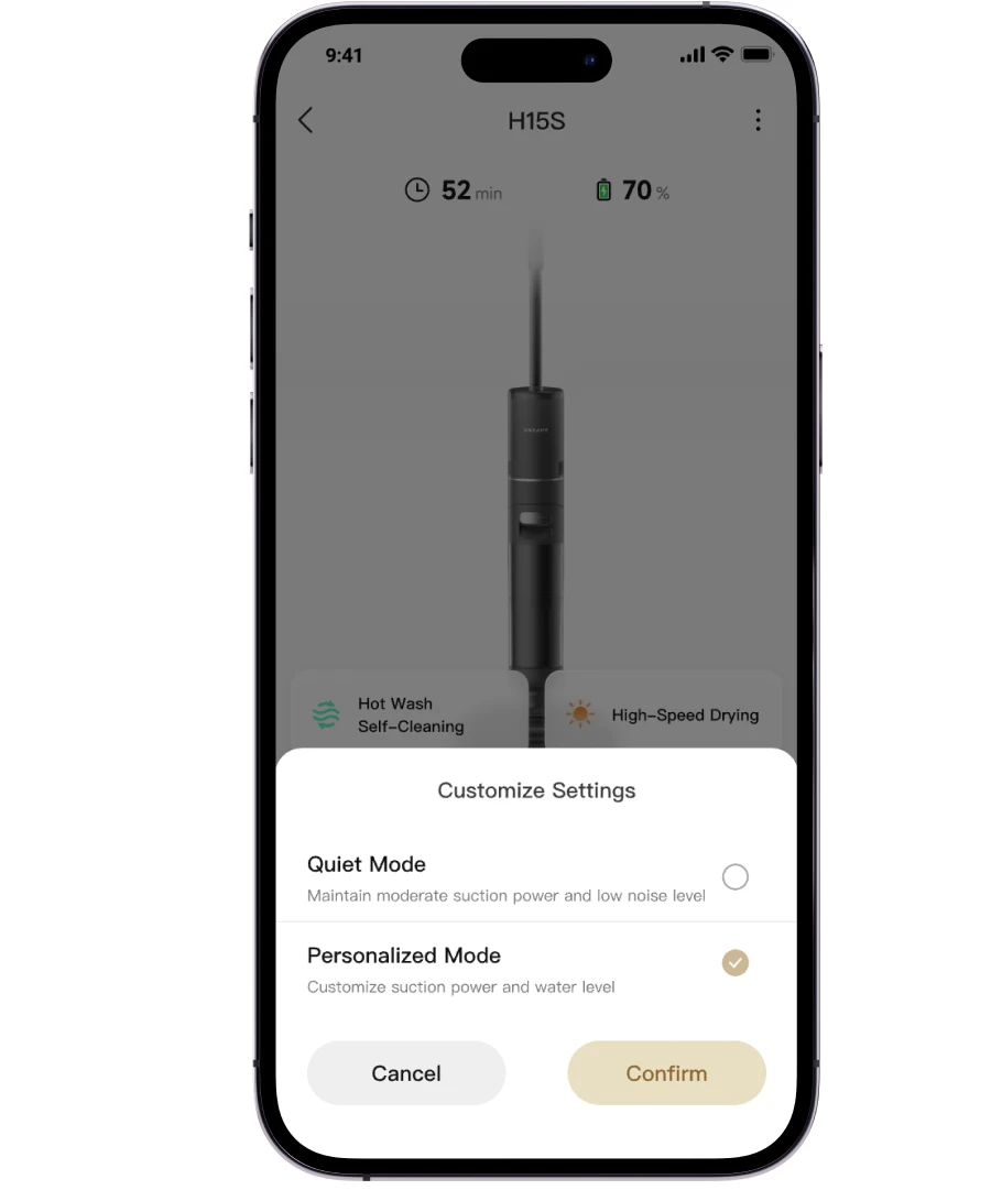 Non esiste sporco troppo difficile, dagli spaghetti ai chicchi di caffè, fino alle fuoriuscite. Con una potenza di aspirazione di 21.000 Pa, H15S elimina facilmente lo sporco bagnato e asciutto, catturando anche i residui nascosti nelle fessure.