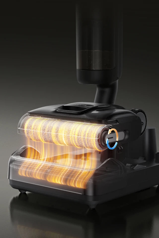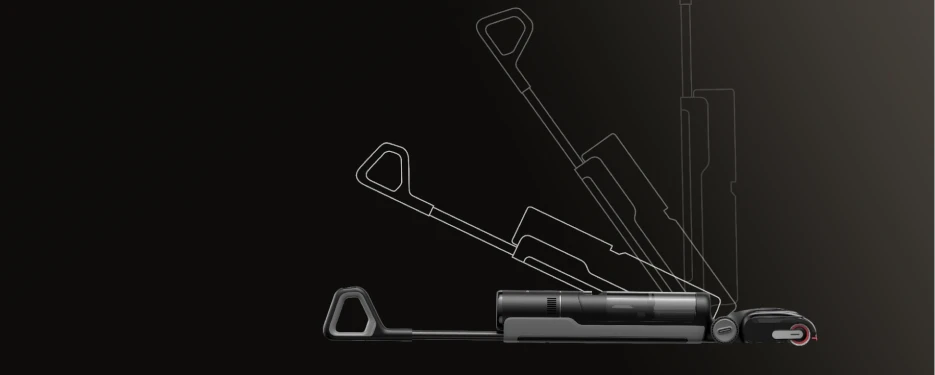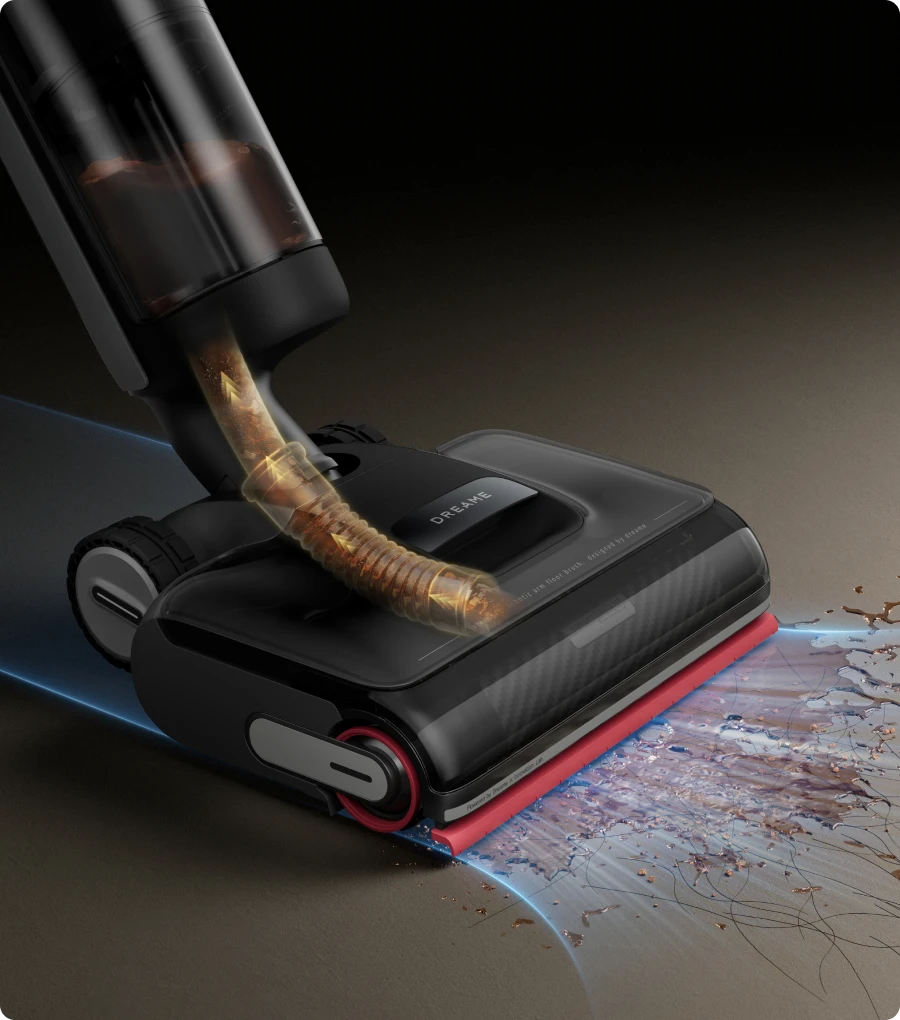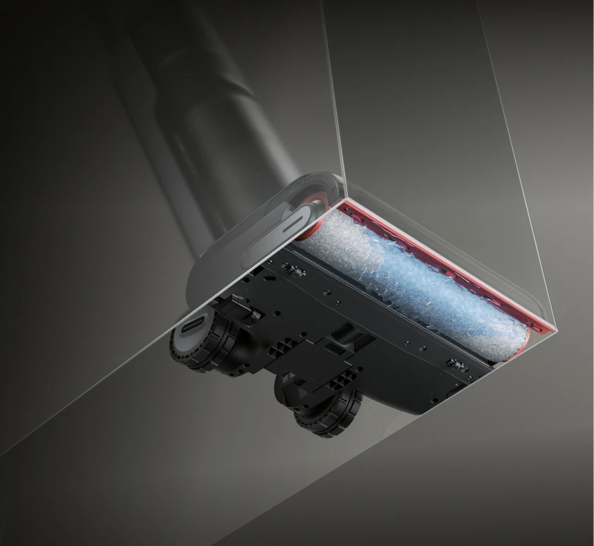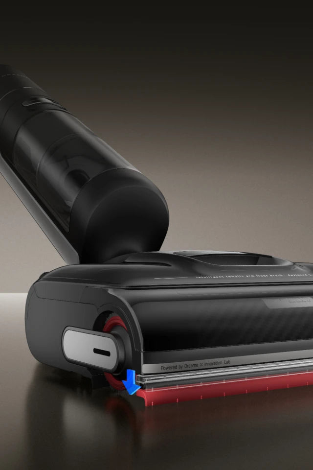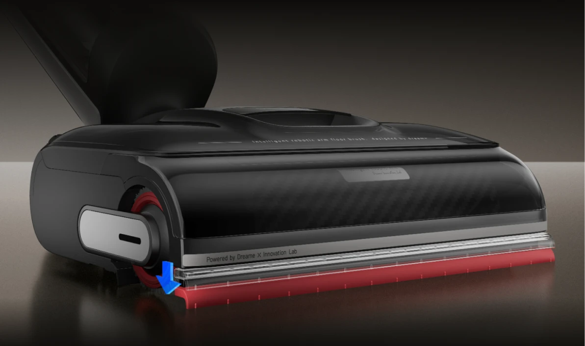 Quando ritrai l'aspirapolvere, il braccio robotico preme con decisione contro il pavimento per rimuovere facilmente eventuali residui di sporco bagnato e asciutto