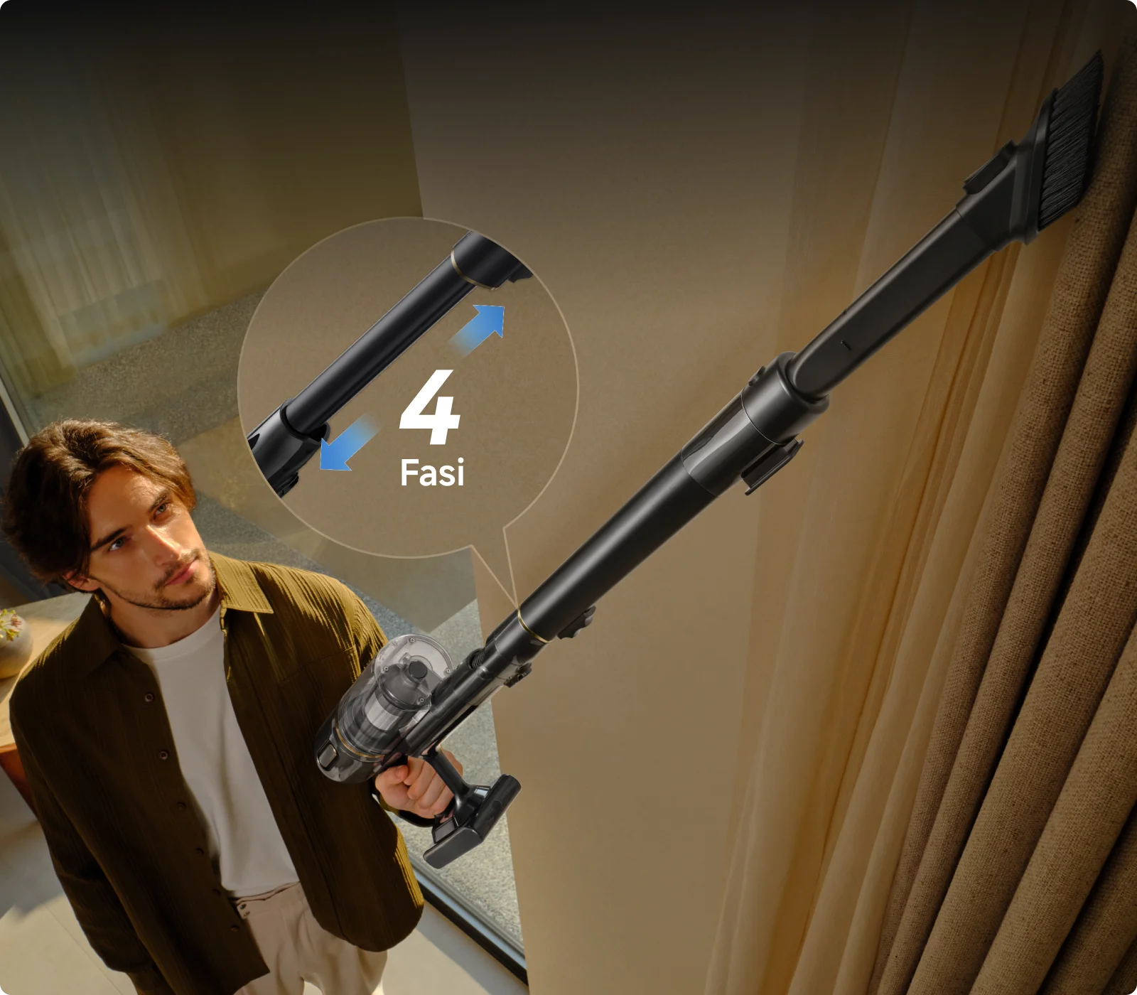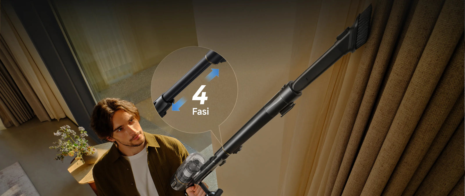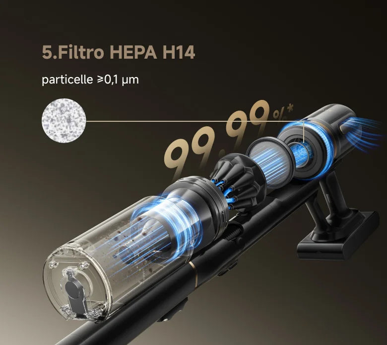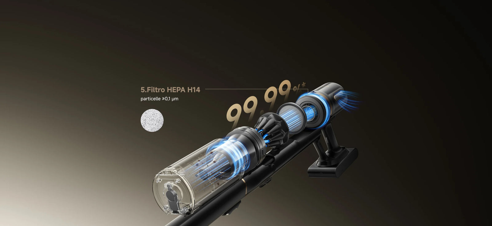La tecnologia a ciclone avanzata genera una potente forza centrifuga per separare in modo efficiente la polvere e impedire l'intasamento del filtro, garantendo un'aspirazione costante e senza interruzioni dall'inizio alla fine.