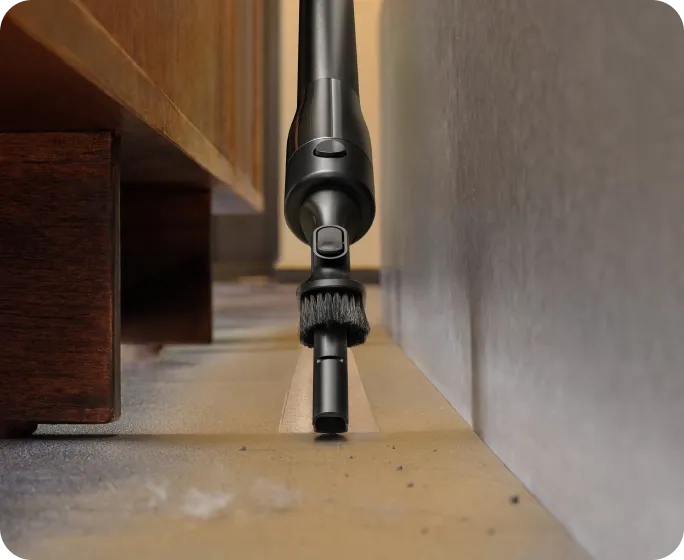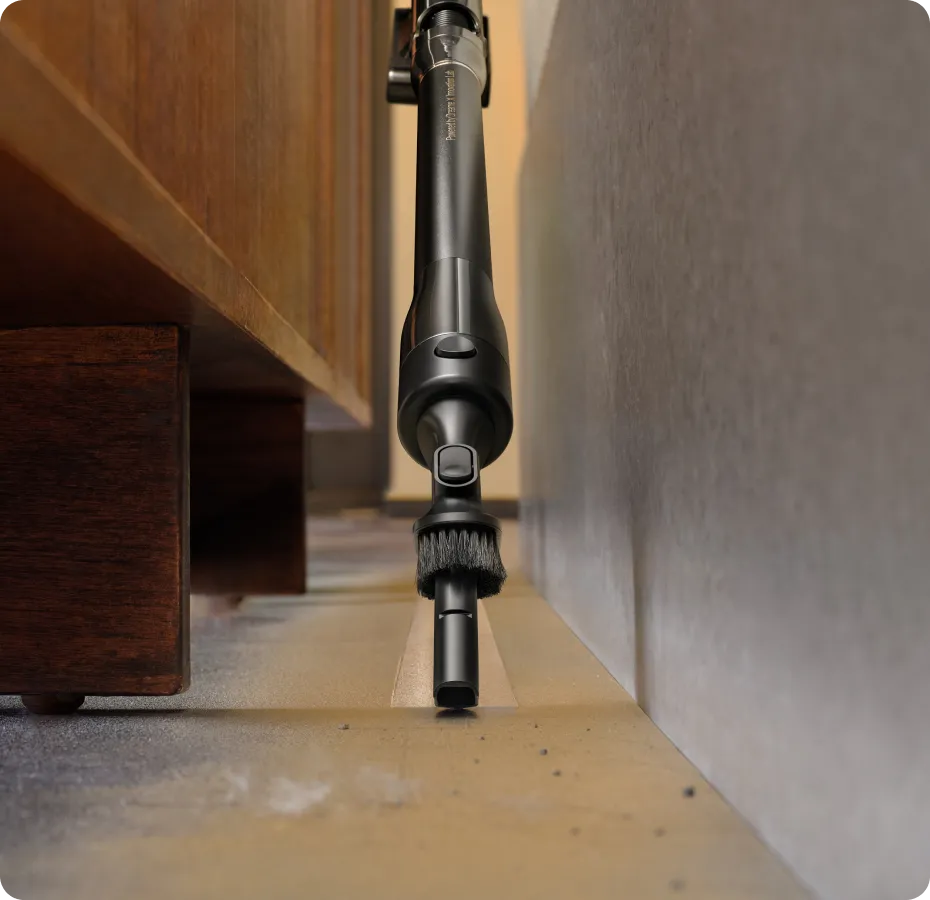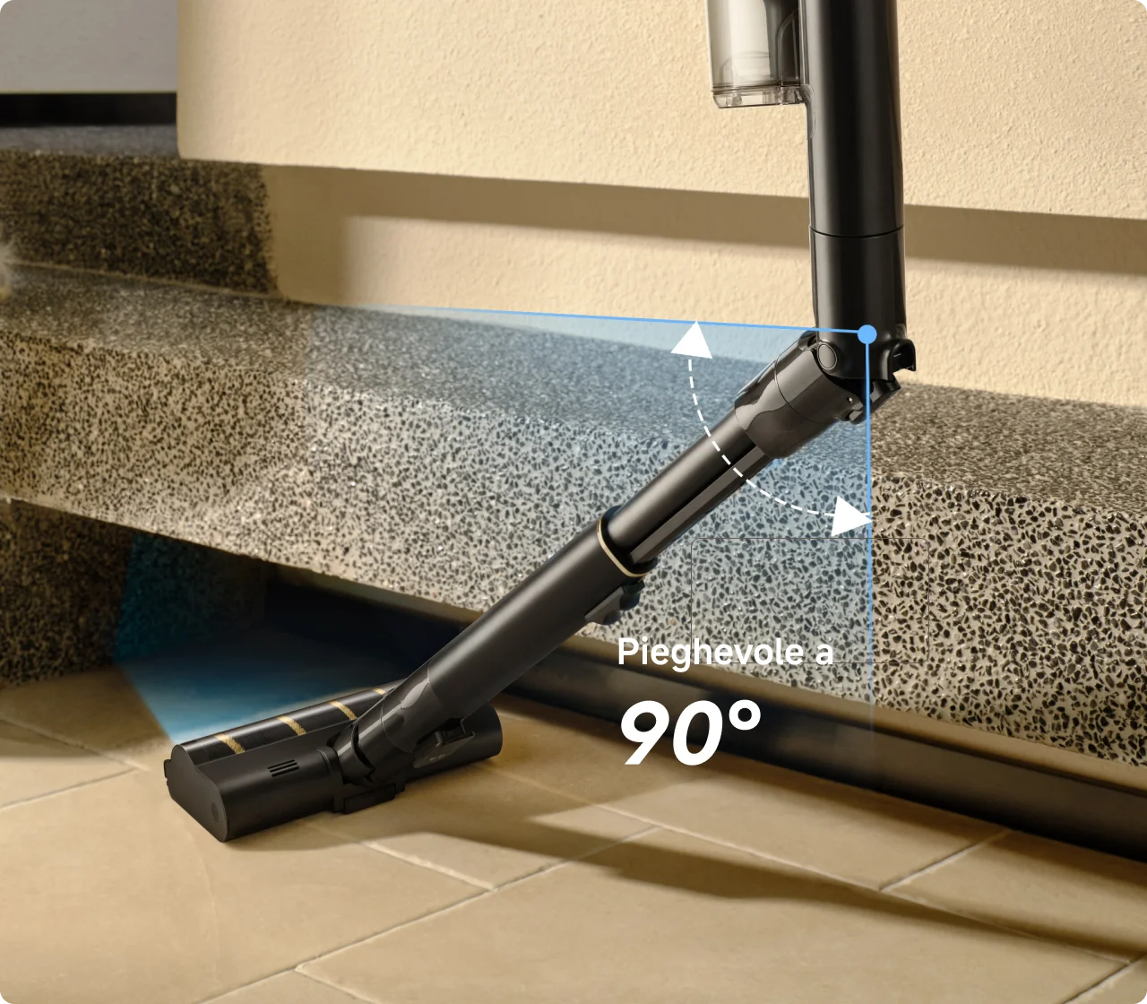 Grazie al rilevamento intelligente a infrarossi, il braccio si abbassa automaticamente per avvicinarsi alle pareti, arrivando fino a 0 mm*, migliorando la pulizia dei bordi e riducendo gli sforzi successivi.