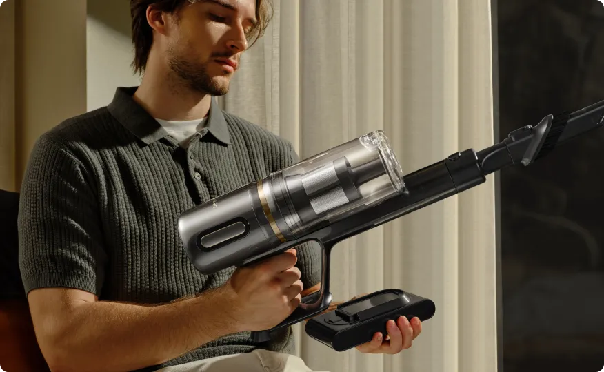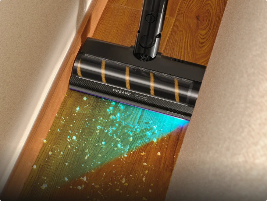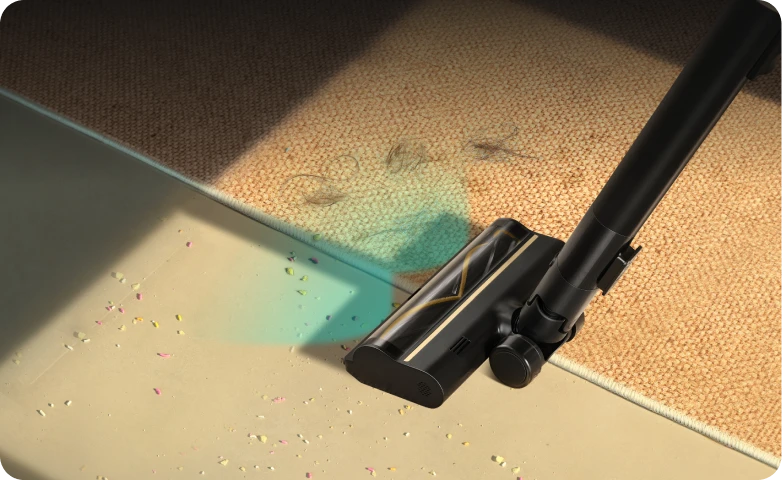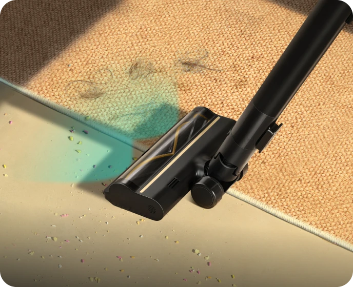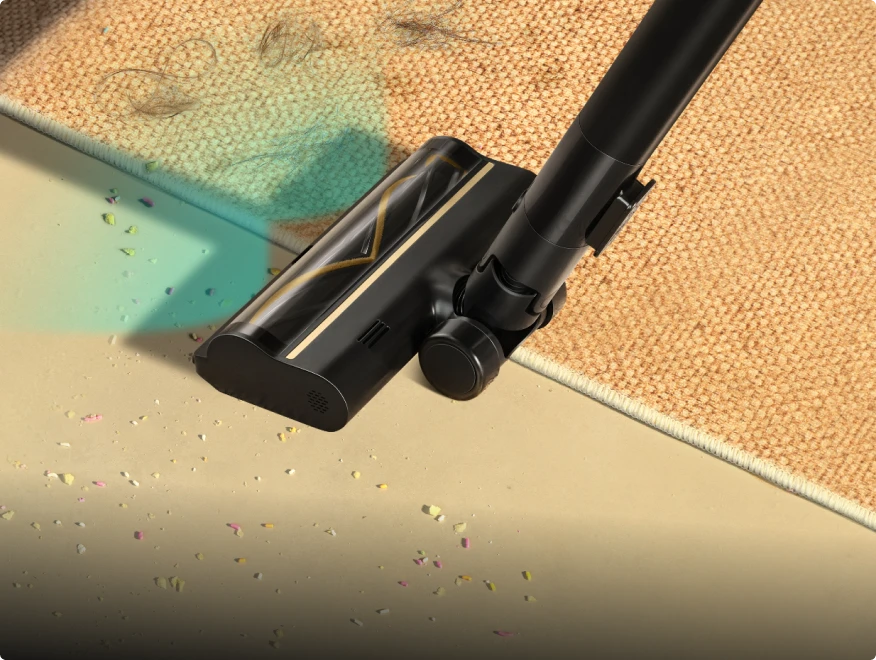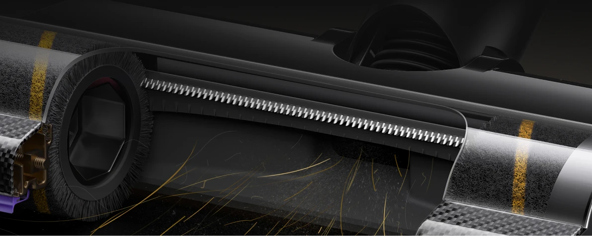 V20 Pro’s upgraded soft roller brush replaces traditional anti-tangle combs with dual motorized scrapers that actively cut hair during vacuuming—keeping the brush clear and eliminating the need for repeated manual hair removal. This advanced mechanism tackles hair tangles more thoroughly and efficiently.
