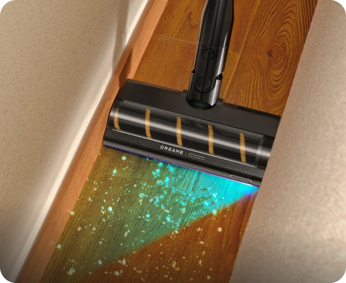 Le luci CelesTect™ rivelano la polvere nascosta, mentre il sensore della polvere rileva le dimensioni e il volume delle particelle per una pulizia più intelligente.