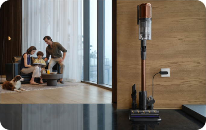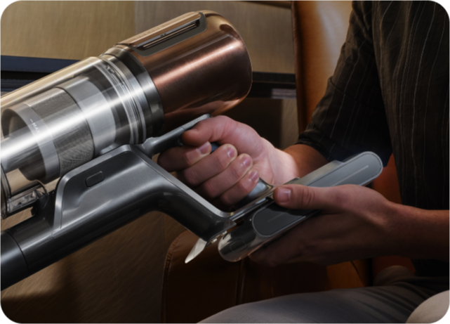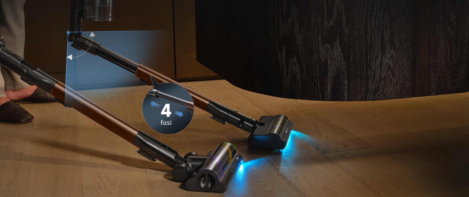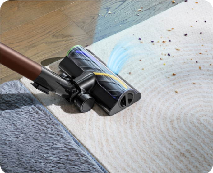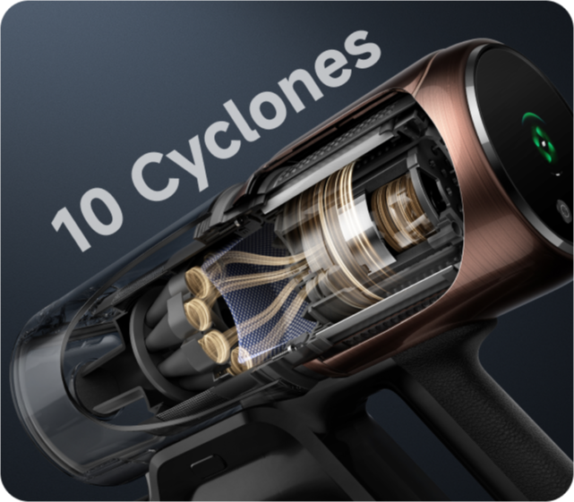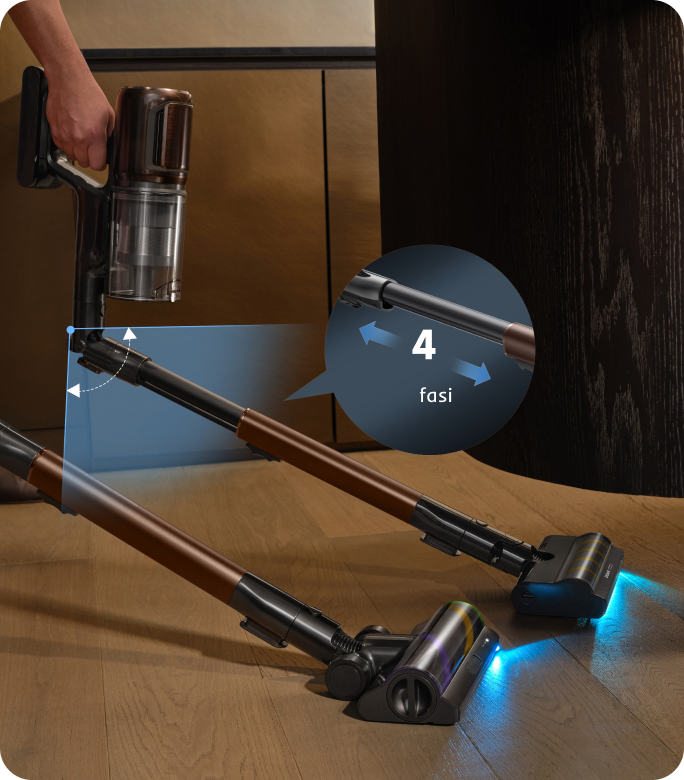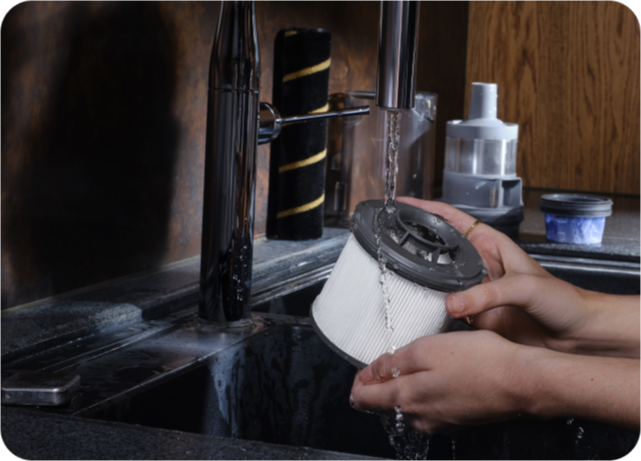 Il sistema di filtraggio a cinque strati, dotato di filtro HEPA di grado H14*, cattura polvere e particelle sottili (including pollen and pet dander) with up to 99,99%* efficiency. It helps release cleaner air back into your home.