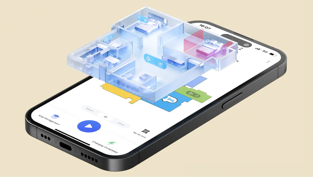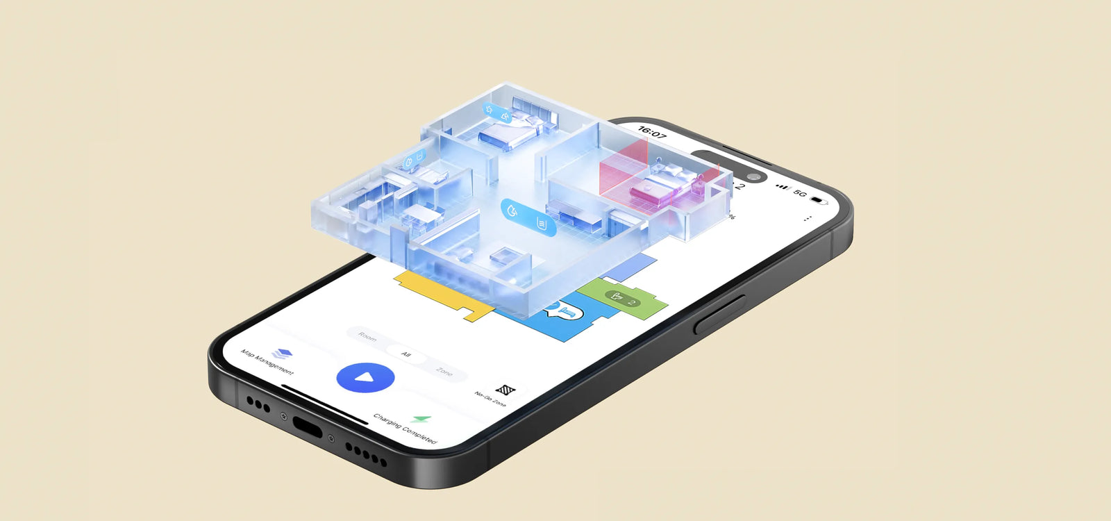 D9 Max Gen 2 genera mappe multipiano personalizzate, perfette per grandi case a più piani con superfici diverse. Il robot conserva la mappa per le diverse sessioni di pulizia.