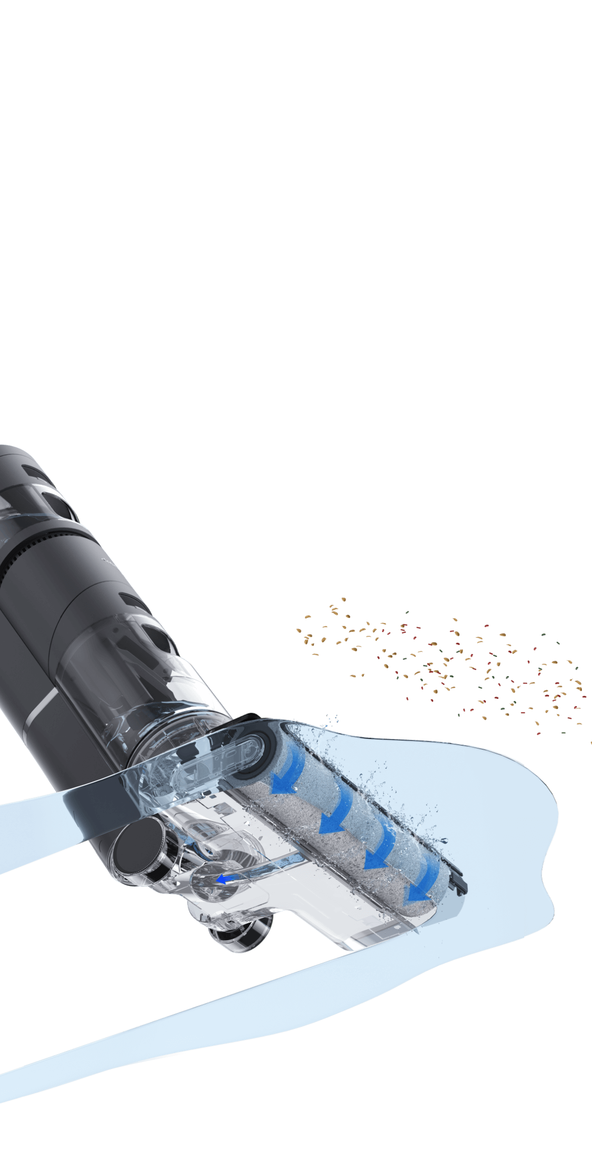 Aspirazione più potente e pulizia a umido profonda combinate, per rimuovere polvere, grumi e liquidi. Un avanzato sistema di circolazione dell’acqua in tempo reale che permette una pulizia completa ed efficiente aspirando, pulendo a umido e lavando, tutto contemporaneamente.