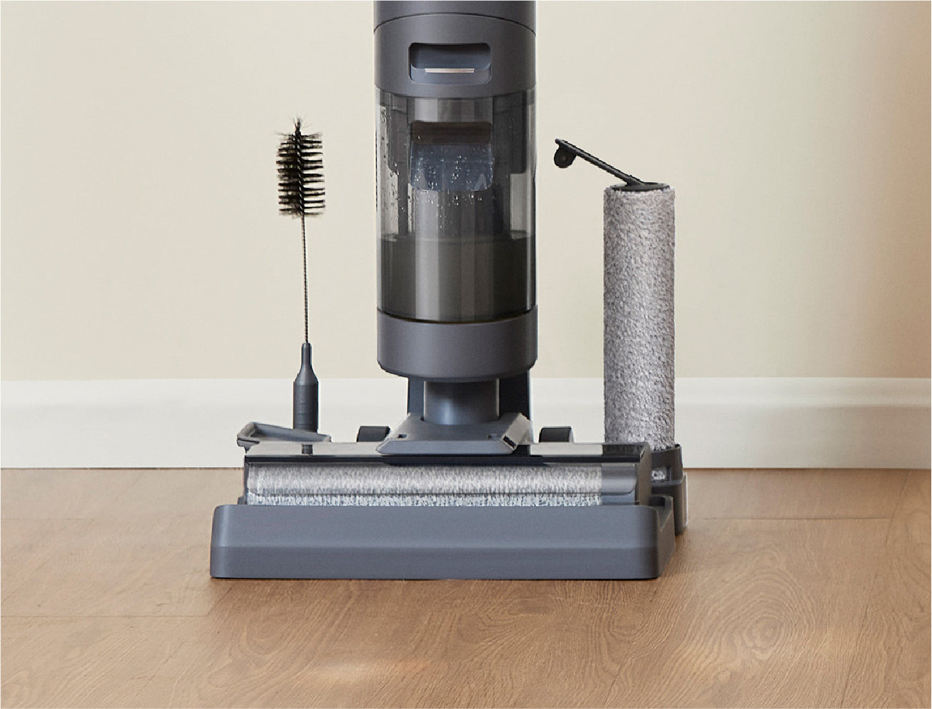 La funzione di pulizia automatica garantisce che il lavaggio venga effettuato con una spazzola pulita. Si pulisce autonomamente mentre lava il pavimento grazie al raschietto incorporato. Posizionare l’aspirapolvere sulla base e premere semplicemente il pulsante per risciacquare a fondo il rullo finché non è pulito.