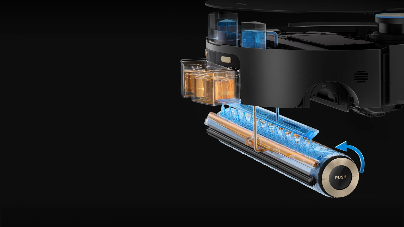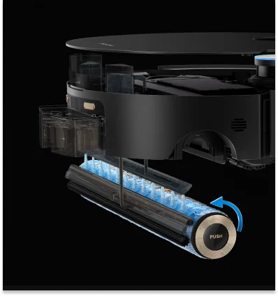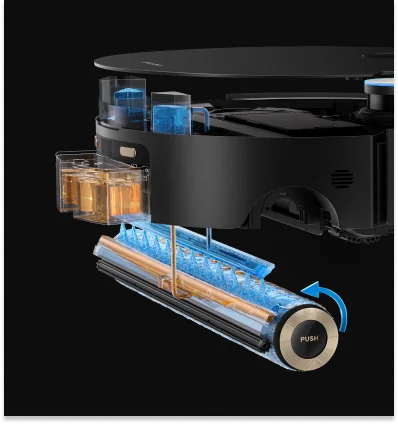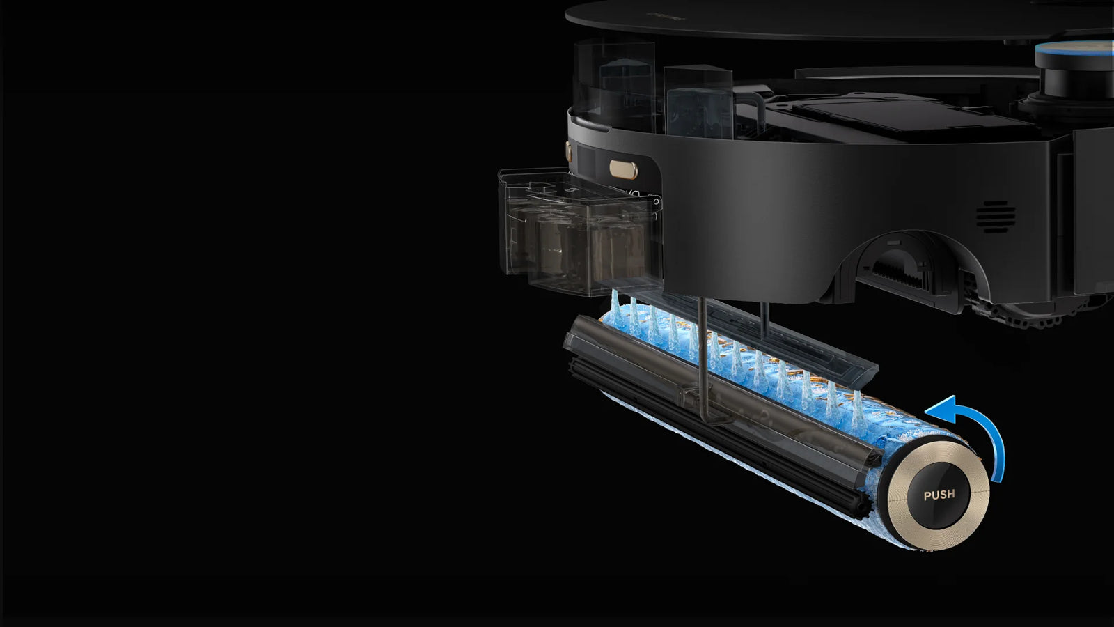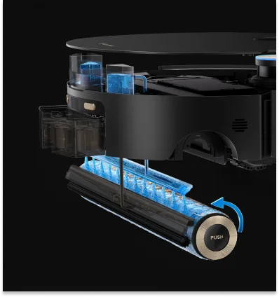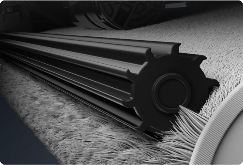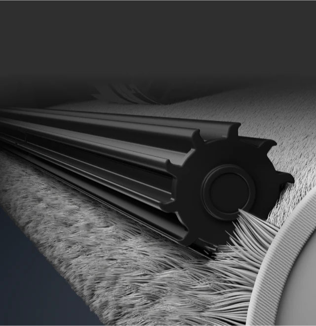 Il modulo con rullo Fluffing ruota nella direzione opposta con un motore ad alta velocità mentre il mocio viene pettinato, allentando il panno quando entra in contatto con il pavimento.