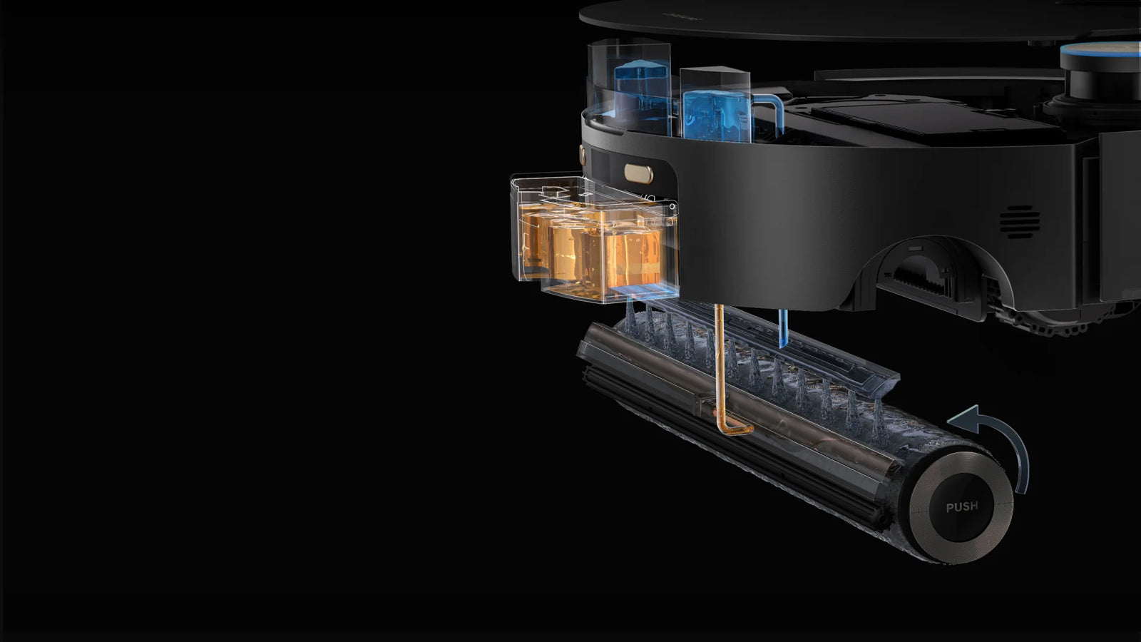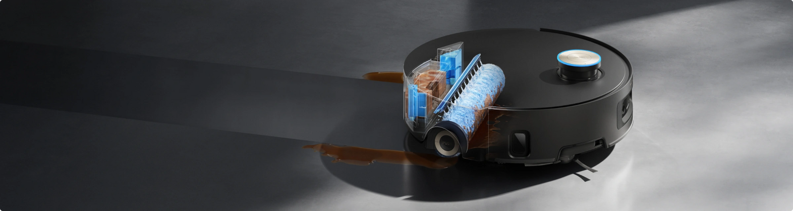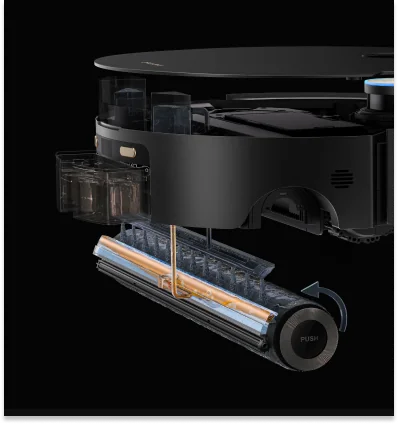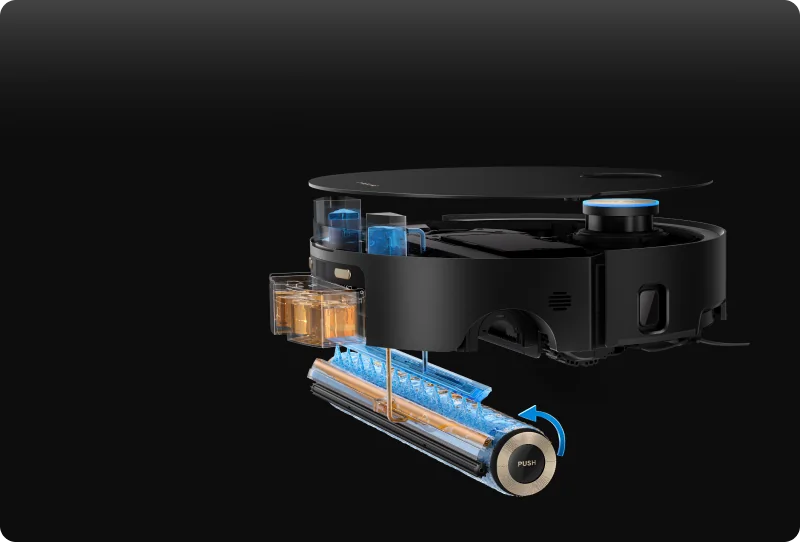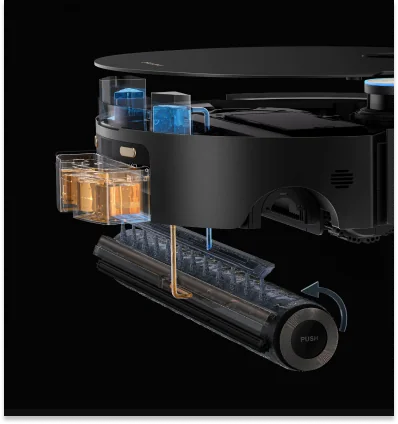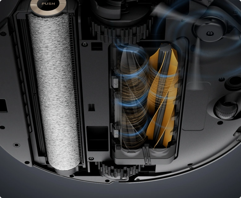 Il modulo con rullo Fluffing ruota nella direzione opposta con un motore ad alta velocità mentre il mocio viene pettinato, allentando il panno quando entra in contatto con il pavimento.