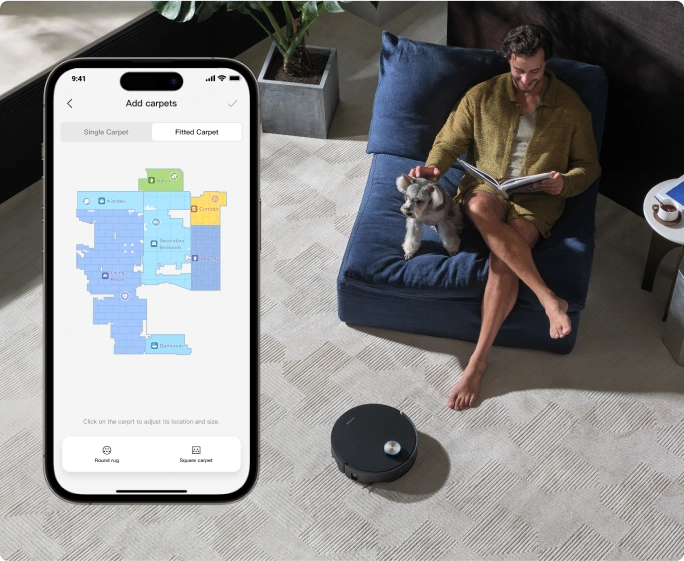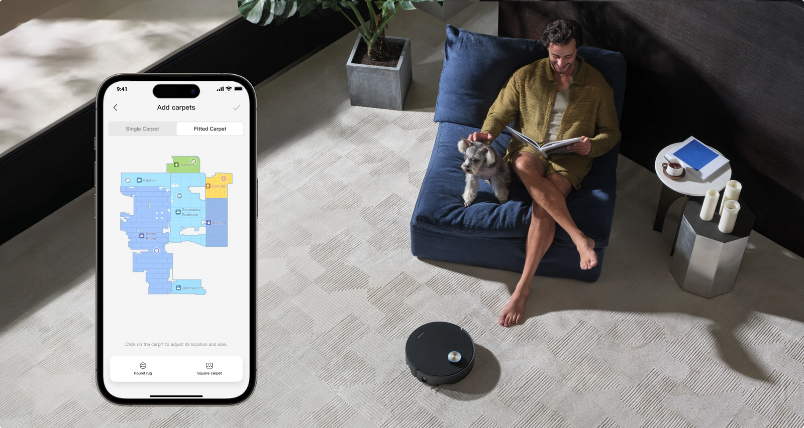 *Questa funzione non è consigliata per tappeti e moquette di altezza superiore a 3 cm, poiché potrebbero sformarsi. Le impostazioni di pulizia di tappeti e moquette a pelo medio-lungo devono essere attivate manualmente tramite l'app di pulizia.