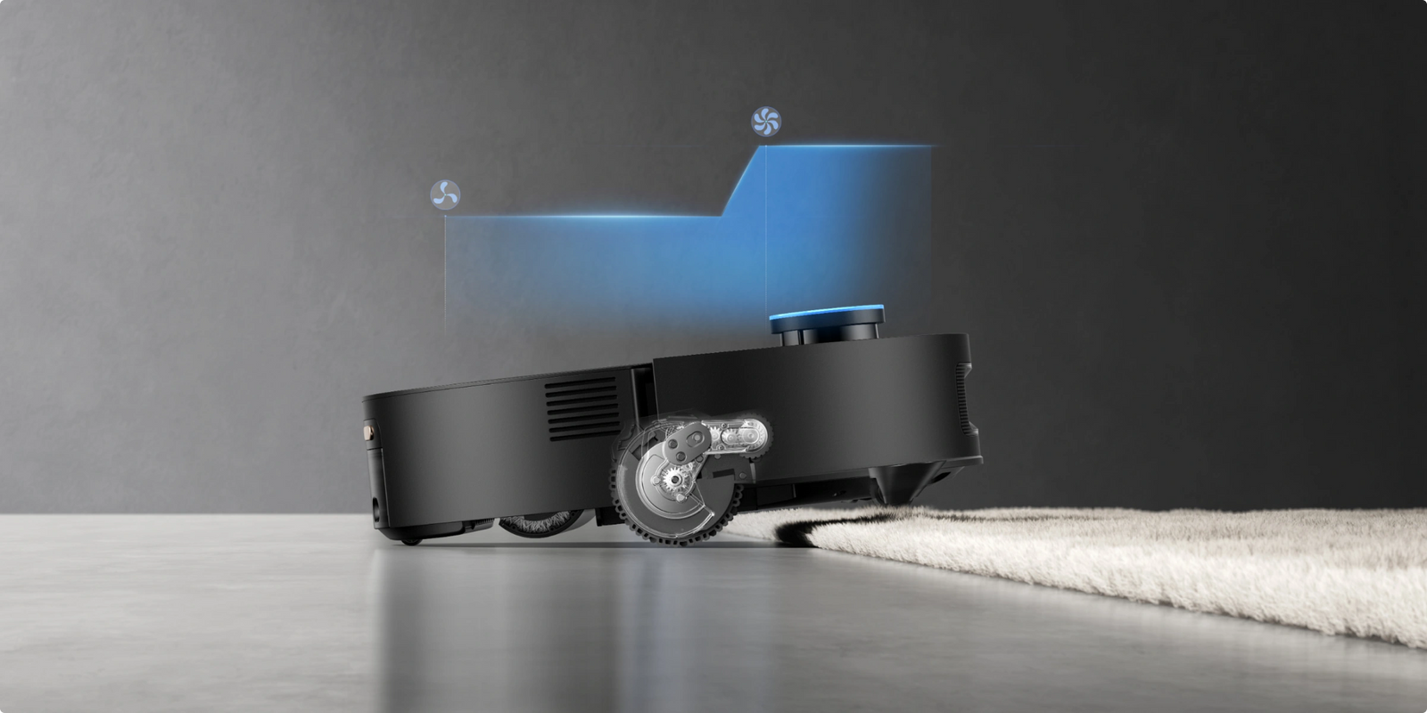 *Aumento della potenza per tappeti/moquette: questa modalità è disponibile nell'app di pulizia. Se rileva la presenza di tappeti o moquette, il robot aspirapolvere aumenta al massimo la potenza di aspirazione. Non disponibile nella modalità di aspirazione Silenziosa.