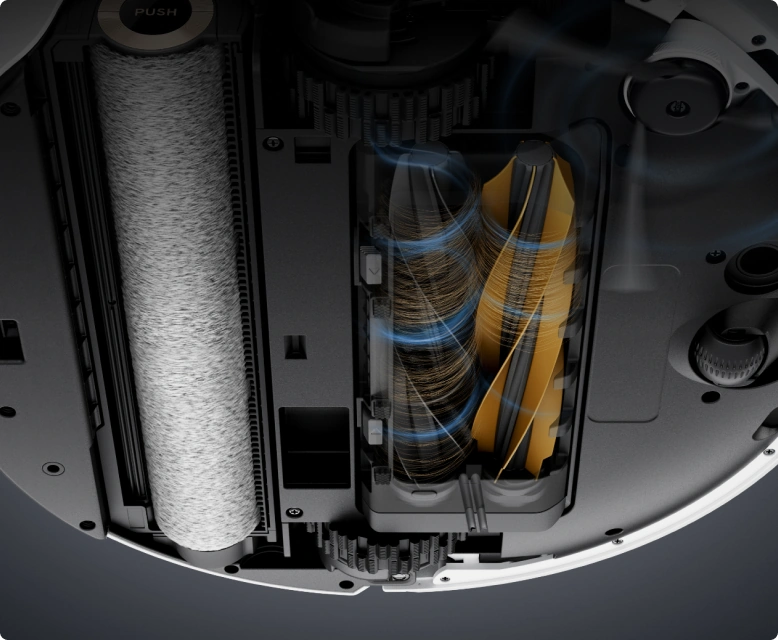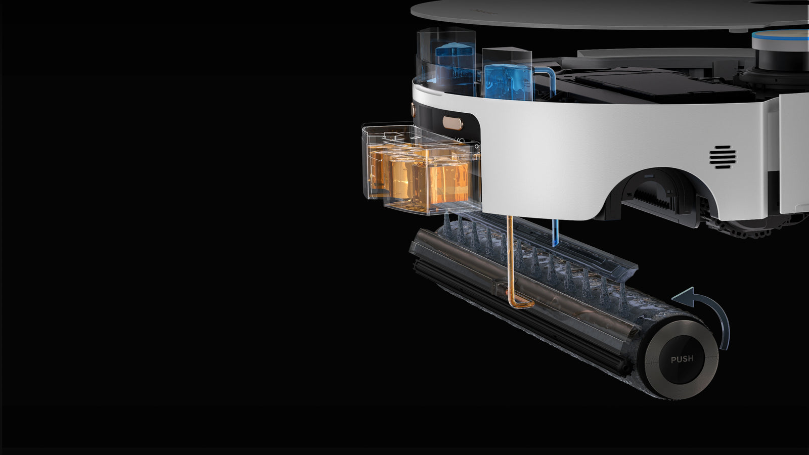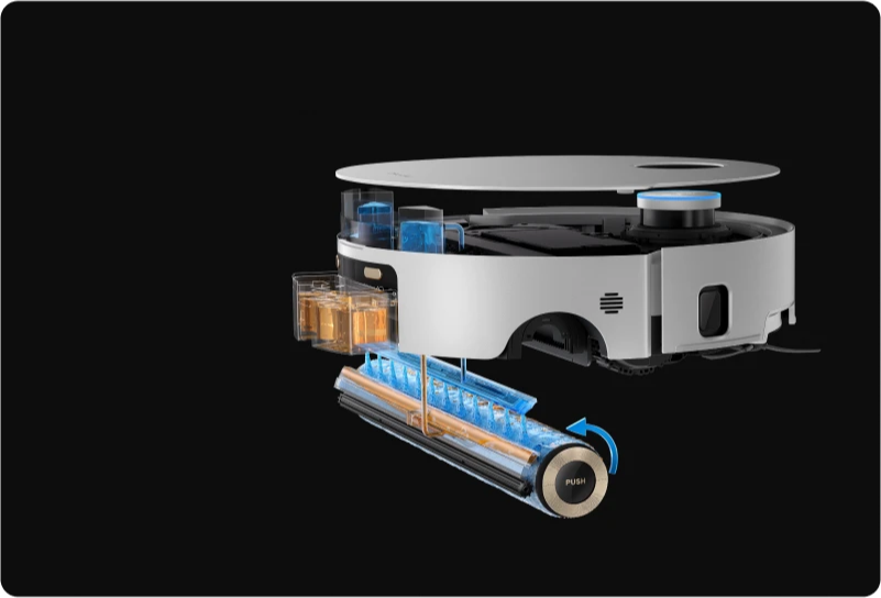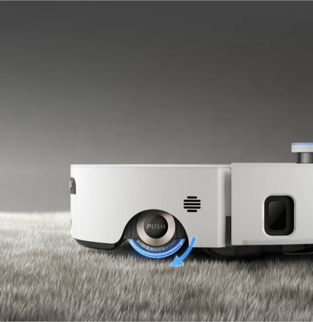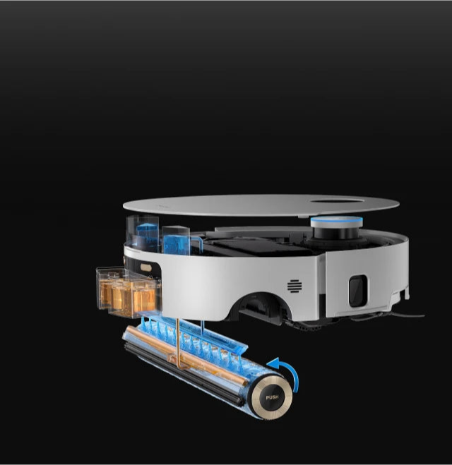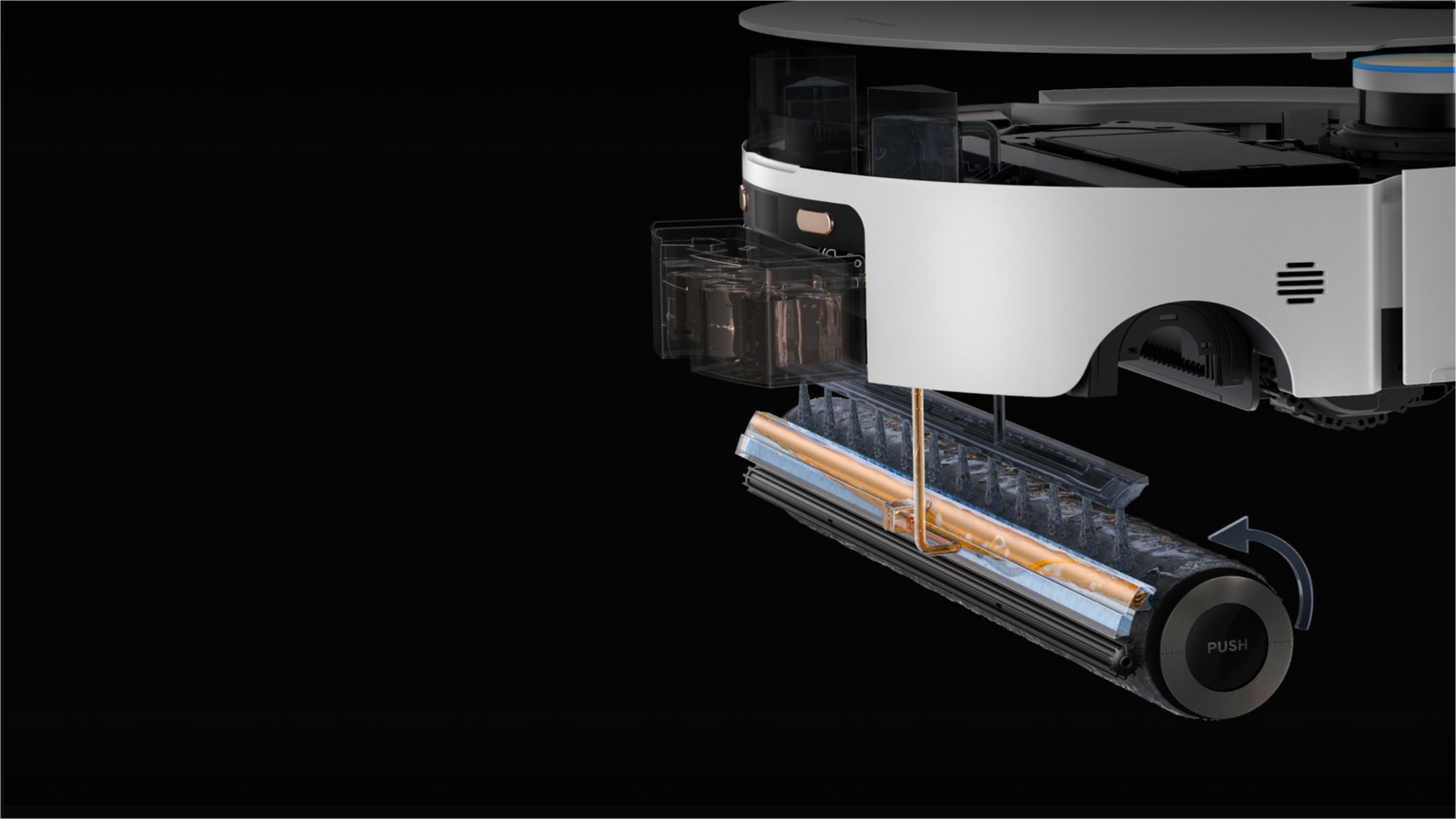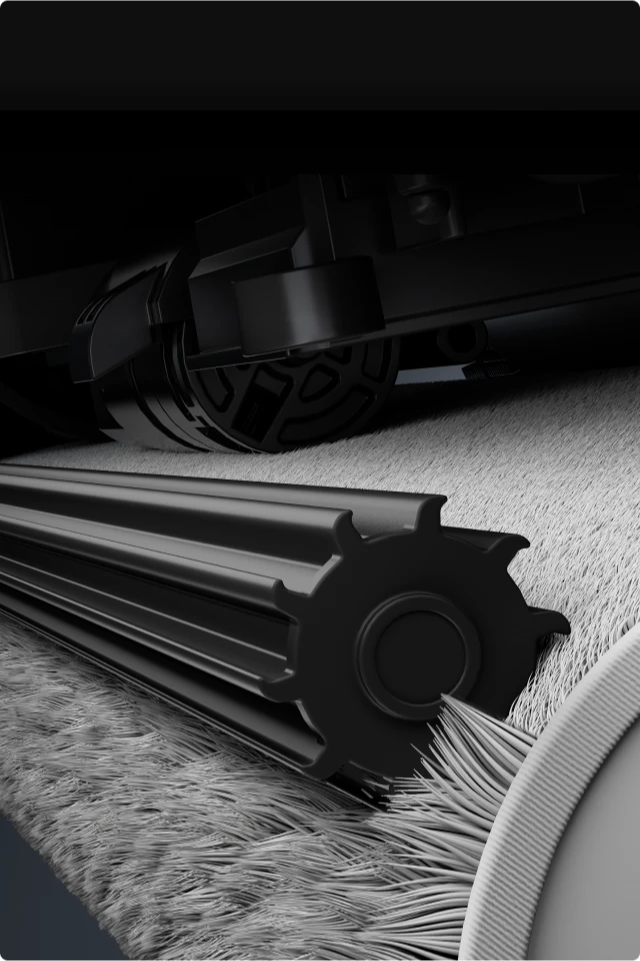Il modulo con rullo Fluffing ruota nella direzione opposta con un motore ad alta velocità mentre il mocio viene pettinato, allentando il panno quando entra in contatto con il pavimento.