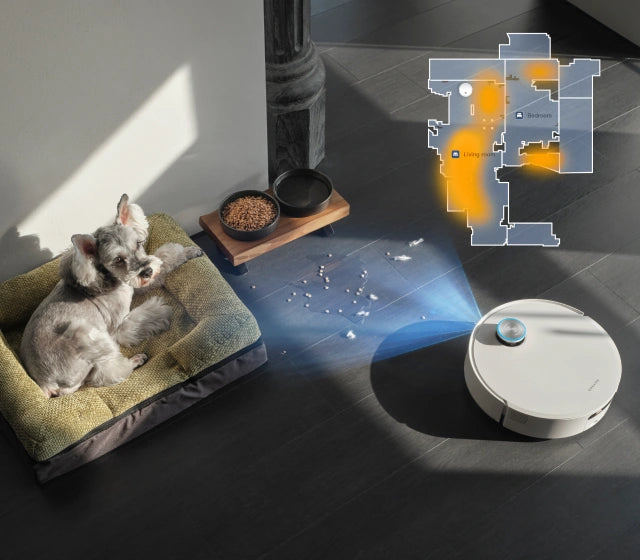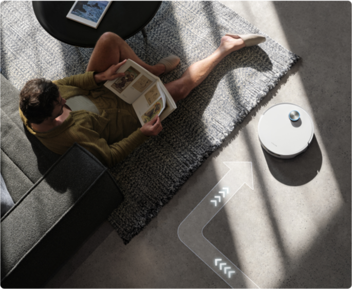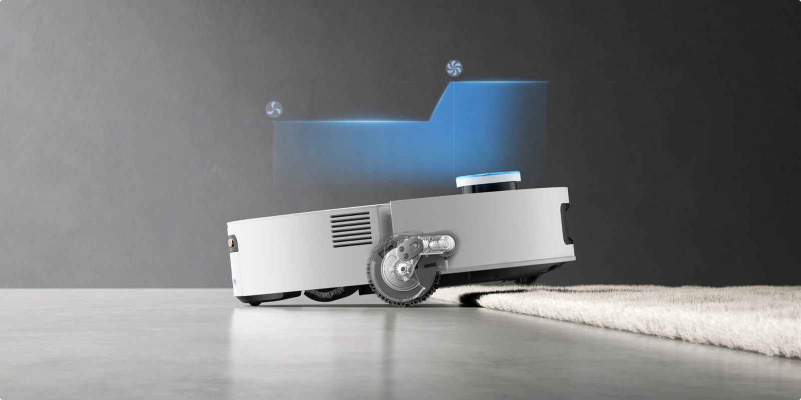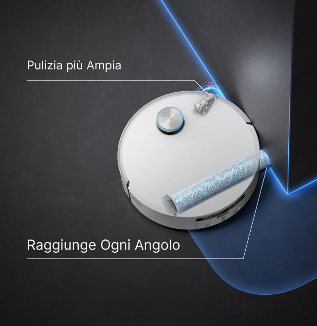 *Aumento della potenza per tappeti/moquette: questa modalità è disponibile nell'app di pulizia. Se rileva la presenza di tappeti o moquette, il robot aspirapolvere aumenta al massimo la potenza di aspirazione. Non disponibile nella modalità di aspirazione Silenziosa.