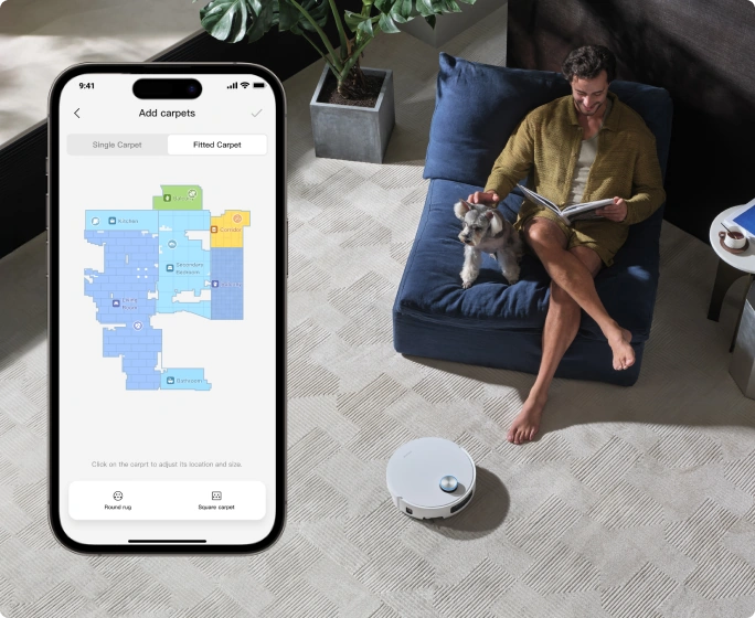 *Questa funzione non è consigliata per tappeti e moquette di altezza superiore a 3 cm, poiché potrebbero sformarsi. Le impostazioni di pulizia di tappeti e moquette a pelo medio-lungo devono essere attivate manualmente tramite l'app di pulizia.