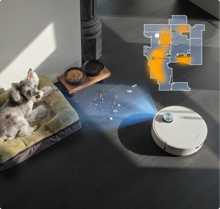 Analogamente al modo in cui l'occhio umano percepisce l'ambiente, le due telecamere con IA ad alta definizione acquisiscono le informazioni sulla profondità e creano i dettagli 3D, evitando facilmente oltre 240* oggetti, con un livello di precisione fino a 1 mm*.