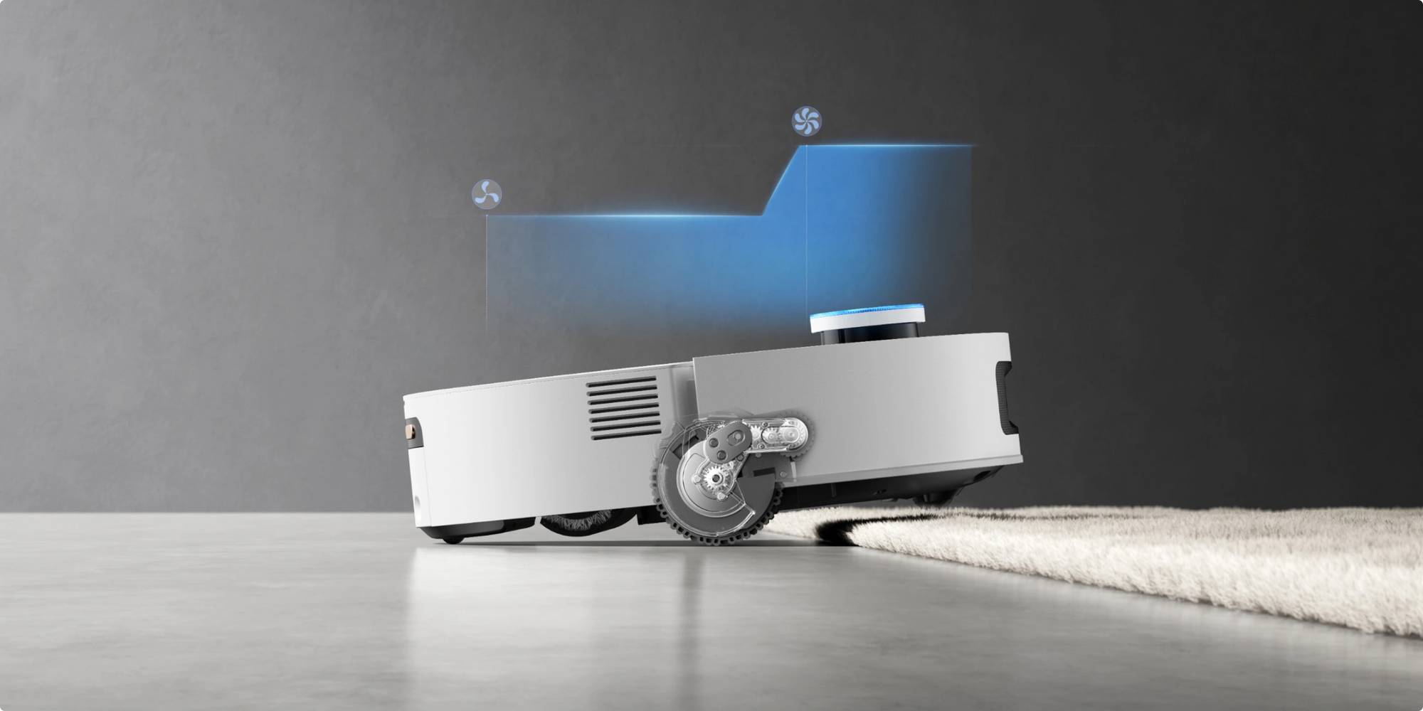 *Aumento della potenza per tappeti/moquette: questa modalità è disponibile nell'app di pulizia. Se rileva la presenza di tappeti o moquette, il robot aspirapolvere aumenta al massimo la potenza di aspirazione. Non disponibile nella modalità di aspirazione Silenziosa.