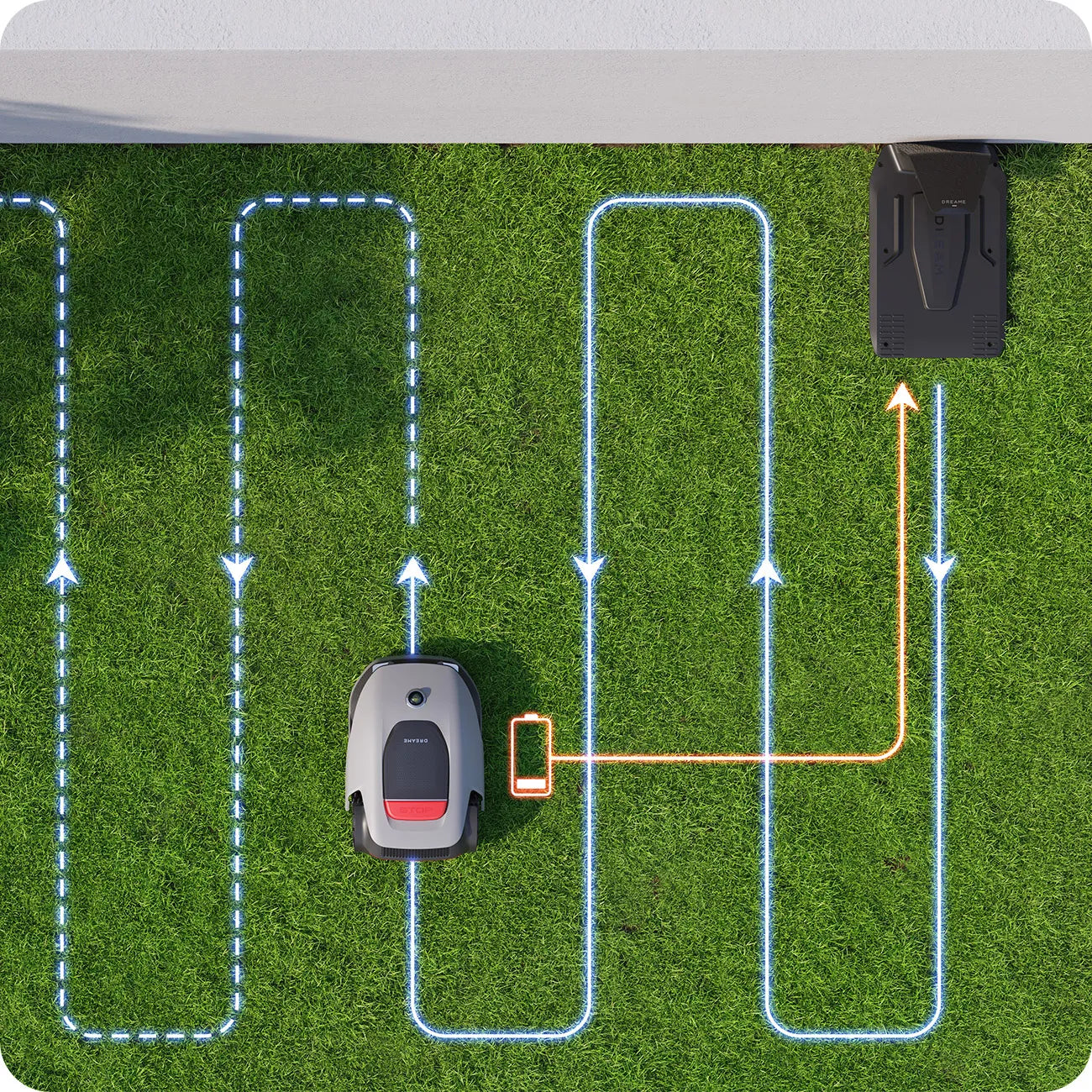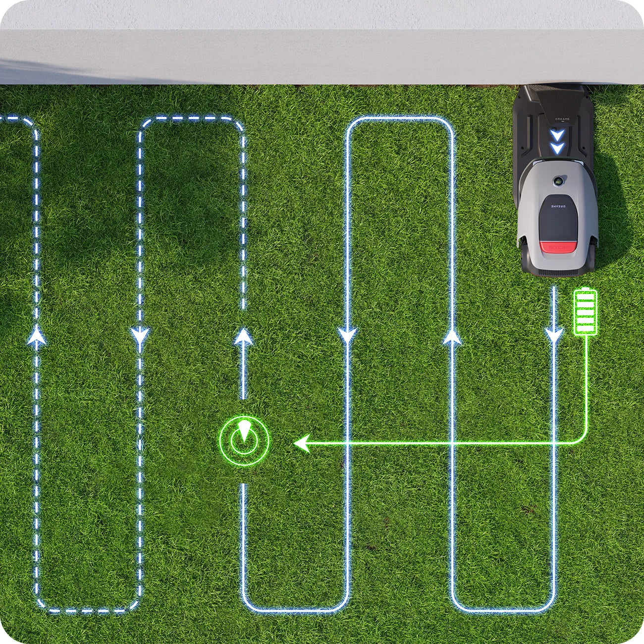 Sia in modalità falciatura dei bordi, a zone o su tutta l'area, l'A1 Pro raggiunge automaticamente i bordi designati, garantendo un taglio preciso dei bordi per un prato impeccabile e ben ordinato.