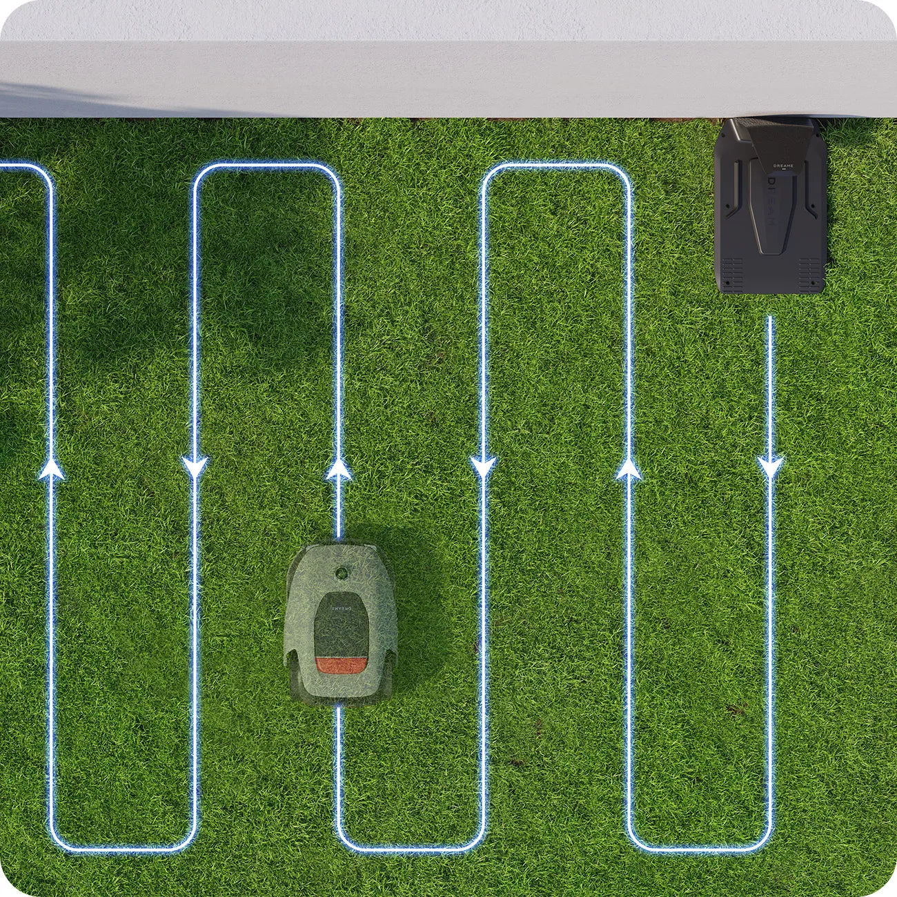 A1 Pro segue un innovativo percorso a U che copre completamente il tuo prato per un'eccezionale uniformità e qualità di taglio. Giardini di dimensioni fino a 1.000 m² possono essere tagliati in sole 24 ore.5