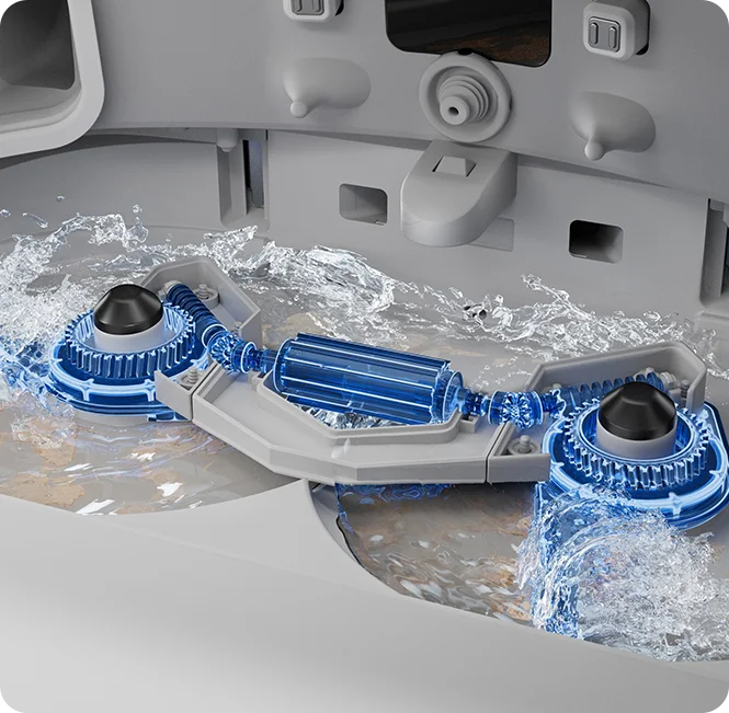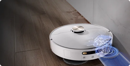 X40 Ultra Complete rileva il livello di sporco e regola il metodo di pulizia di conseguenza, per affrontare anche lo sporco ostinato e rimuovere le macchie più resistenti, come quelle di salsa di soia. Grazie alla spazzola laterale sollevabile, che impedisce la diffusione dello sporco, l'aspirapolvere garantisce un lavaggio accurato e preciso a una velocità inferiore*.
