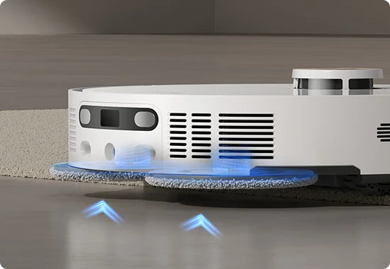 2. 10,5 mm: la differenza di altezza del robot aspirapolvere è di 10,5 mm prima e dopo il sollevamento dei moci. Se sono presenti tappeti/moquette con pelo oltre i 3 mm, si consiglia l'uso dell'app Dreamehome per impostare il robot aspirapolvere in modo che eviti i tappeti/moquette a pelo medio e lungo e li protegga dall'acqua.