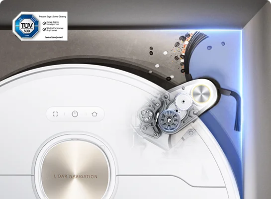 X40 Ultra Complete rileva il livello di sporco e regola il metodo di pulizia di conseguenza, per affrontare anche lo sporco ostinato e rimuovere le macchie più resistenti, come quelle di salsa di soia. Grazie alla spazzola laterale sollevabile, che impedisce la diffusione dello sporco, l'aspirapolvere garantisce un lavaggio accurato e preciso a una velocità inferiore*.