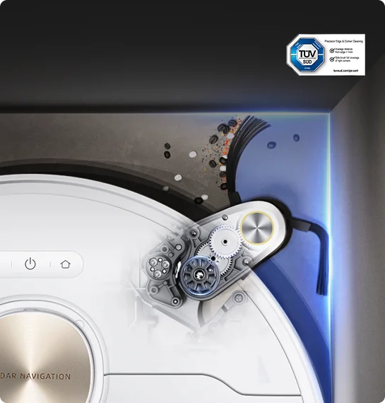 X40 Ultra Complete rileva il livello di sporco e regola il metodo di pulizia di conseguenza, per affrontare anche lo sporco ostinato e rimuovere le macchie più resistenti, come quelle di salsa di soia. Grazie alla spazzola laterale sollevabile, che impedisce la diffusione dello sporco, l'aspirapolvere garantisce un lavaggio accurato e preciso a una velocità inferiore*.