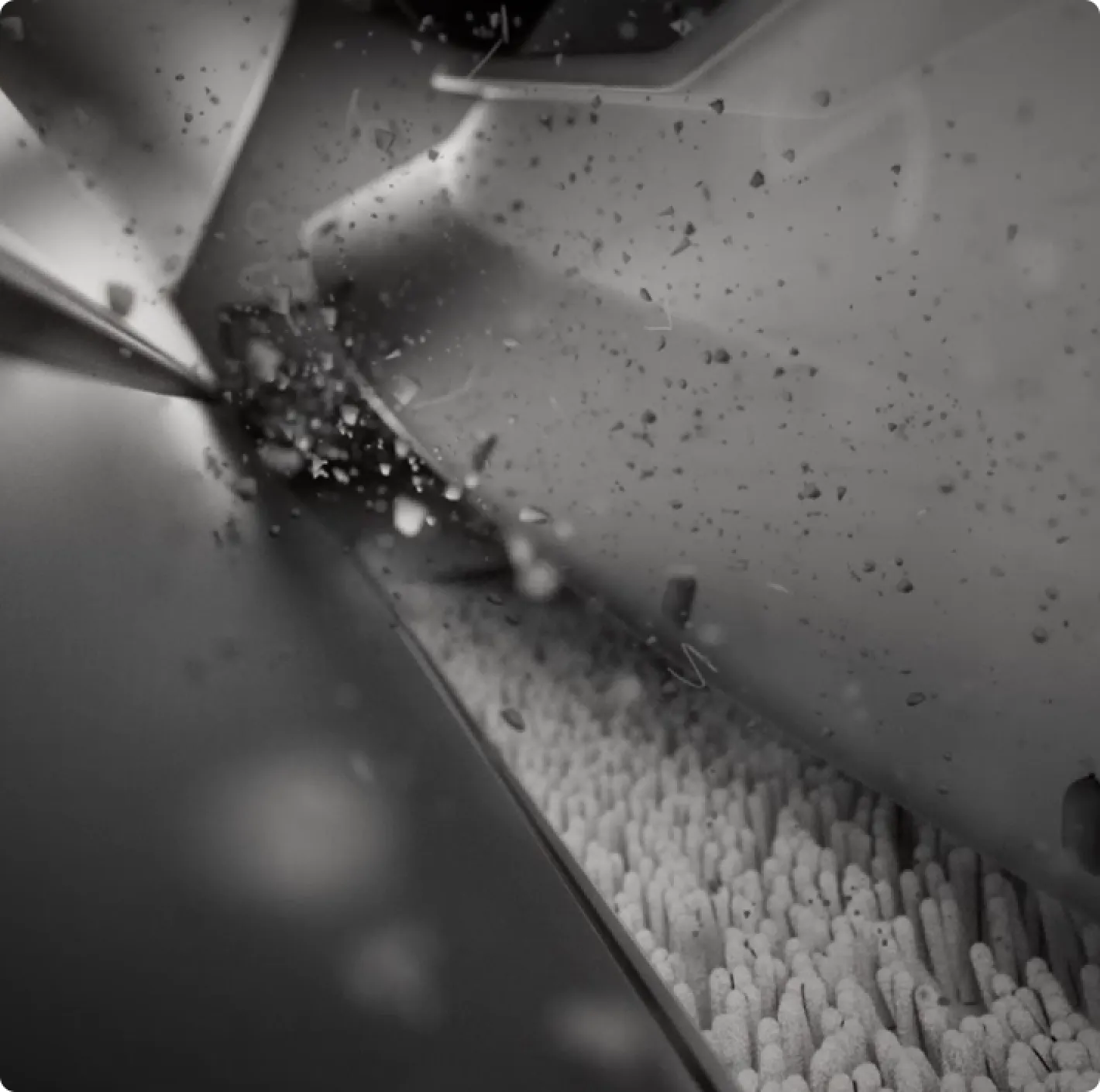 La spazzola laterale sollevabile di X40 Ultra Complete si muove di oltre 10 mm* verso l'alto e verso il basso in sincronia con i moci e la spazzola principale, per separare in modo efficiente la pulizia a secco e con acqua.