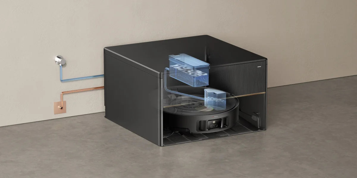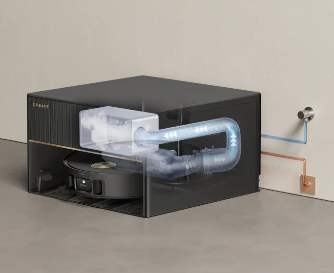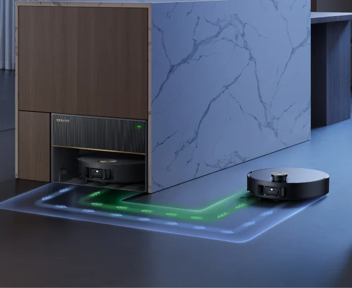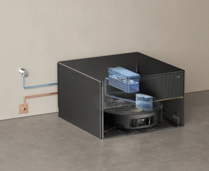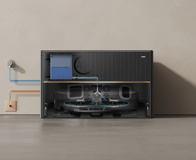 No more heavy lifting or manual chores! Utilize up to 100 days* of hands-free vacuuming, self-cleaning mops with hot water, auto refilling, and drying systems. Each feature works together to simplify cleaning, reduce maintenance, and keep your home fresh—without the effort.