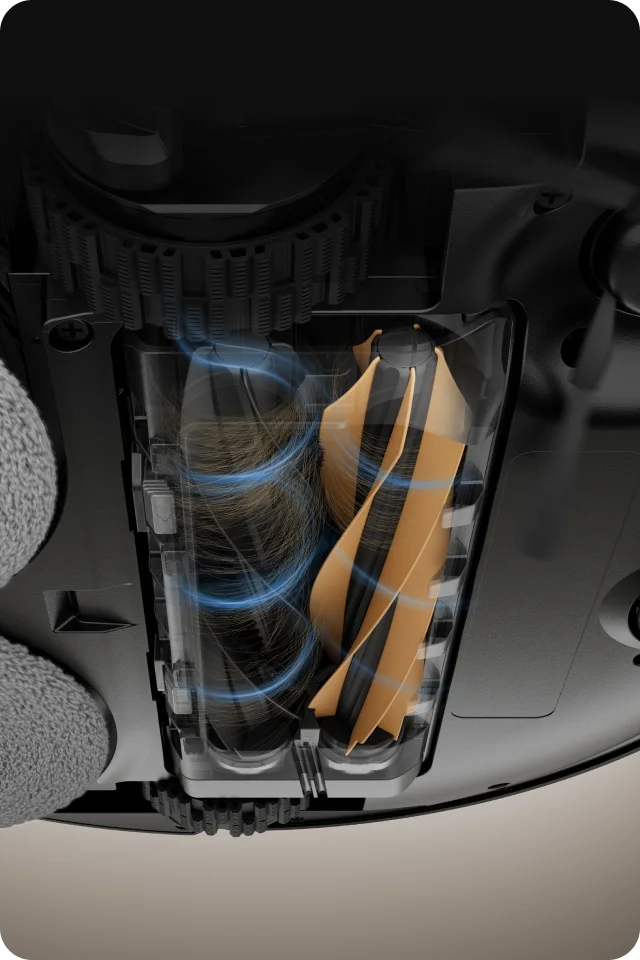 La doppia spazzola antigroviglio HyperStream™ elimina i capelli dai pavimenti senza creare grovigli. Il design a doppia azione solleva ciocche lunghe fino a 30 cm*, per una pulizia completa. Si adatta a ogni superficie, rimuovendo sporco e detriti e riducendo al contempo il rumore, sia che scivoli sui pavimenti duri con le morbide setole in nylon, sia che affronti i tappeti con la resistente gomma TPU. I pavimenti vengono puliti con cura e in silenzio senza creare grovigli nelle spazzole.