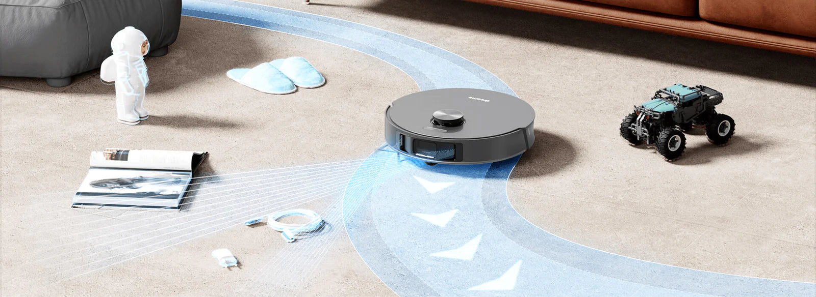 Rileva accuratamente tappeti e moquette per sollevare automaticamente i mocio e aumentare l'aspirazione, per una pulizia profonda capace di gestire facilmente sporco, polvere e residui fastidiosi. La tecnologia a ultrasuoni identifica con precisione tappeti e moquette. Solleva i mocio fino a 7 mm* per mantenere i tappeti asciutti ed evitare di trascinare i mocio sporchi sui pavimenti puliti quando tornano alla base.