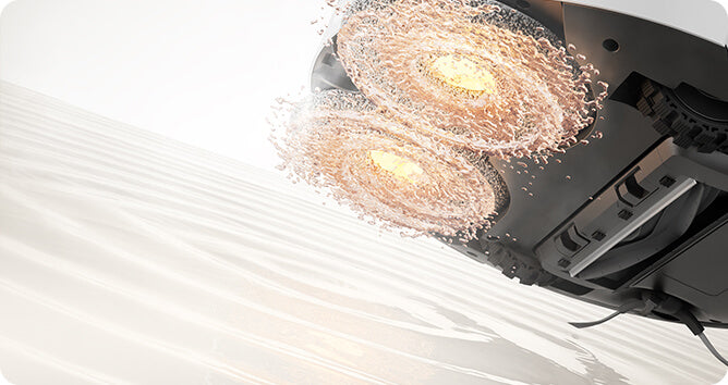 Il sistema di pulizia DuoScrub™ usa le azioni di rotazione e pressione per rimuovere lo sporco dai pavimenti appiccicosi in modo efficace.