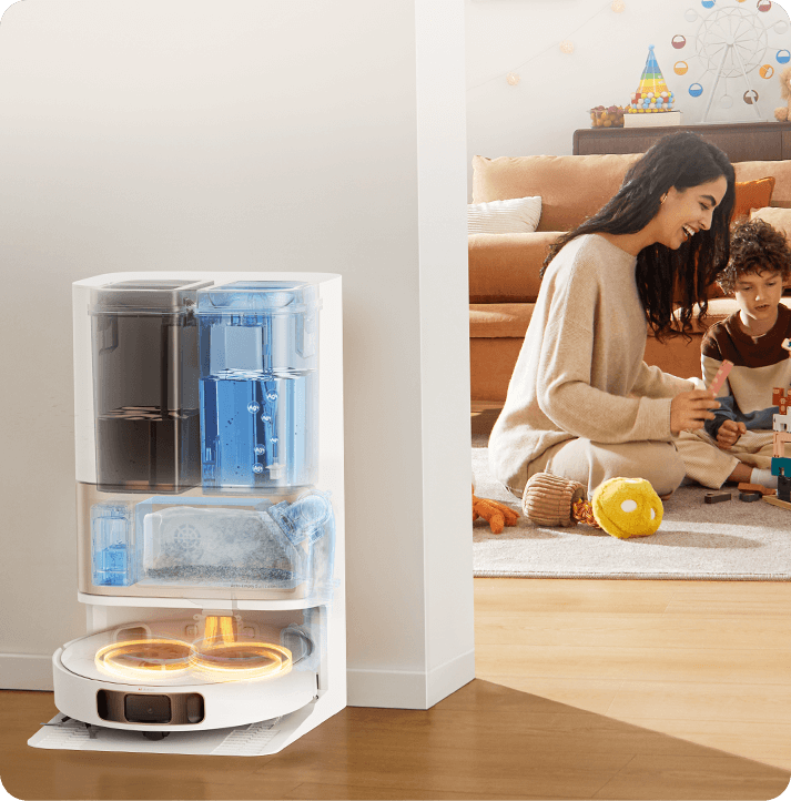 Da oggi puoi passare l'aspirapolvere in modo veloce e affidabile restando sul divano. Scopri la praticità della pulizia automatizzata unita a un potente sistema di riduzione del rumore.