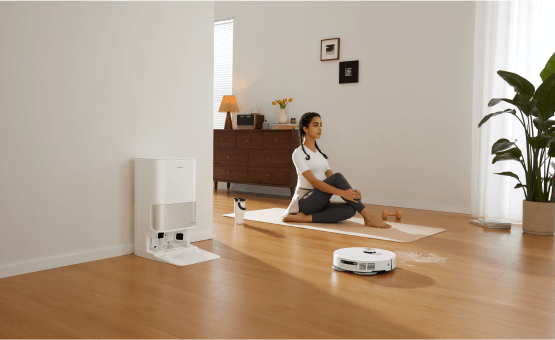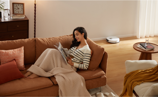Da oggi puoi passare l'aspirapolvere in modo veloce e affidabile restando sul divano. Scopri la praticità della pulizia automatizzata unita a un potente sistema di riduzione del rumore.