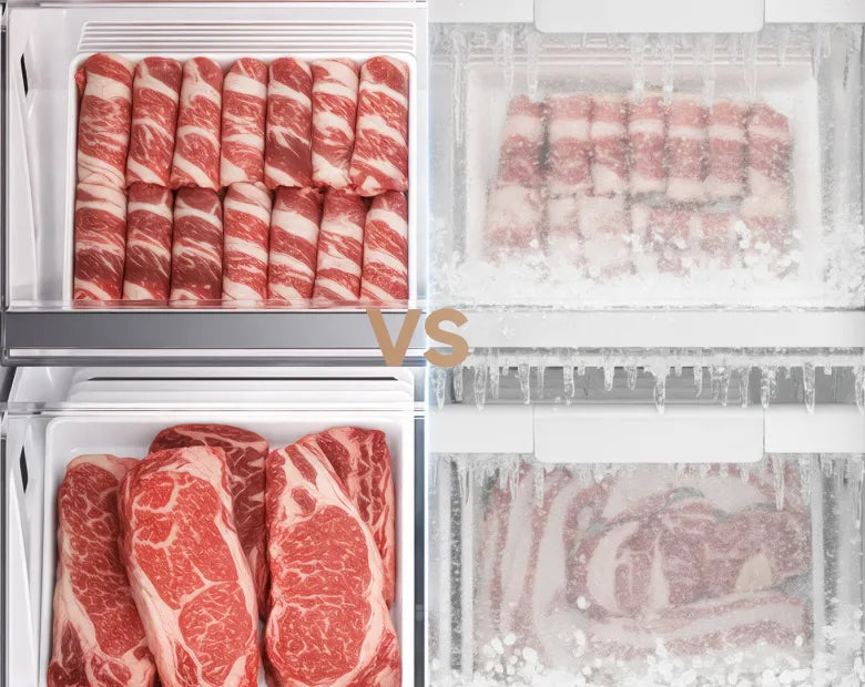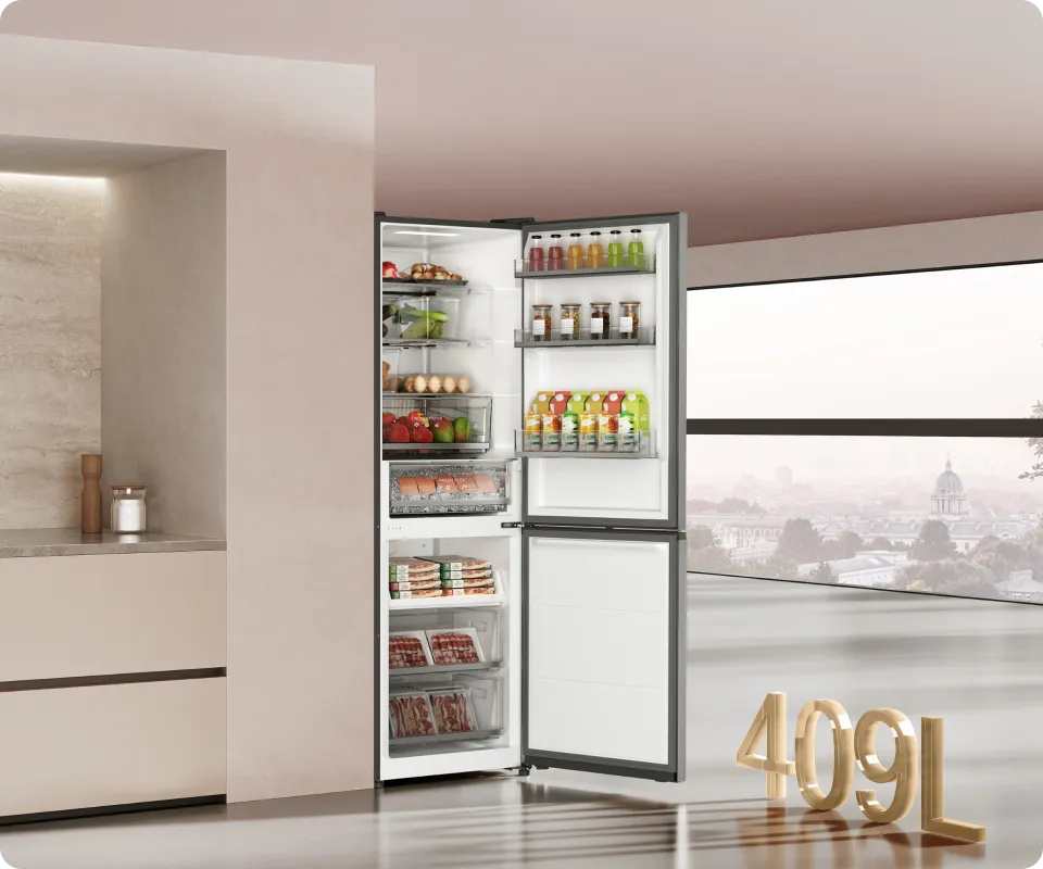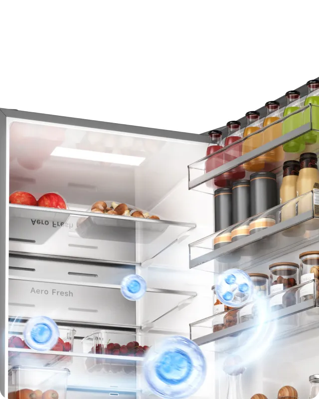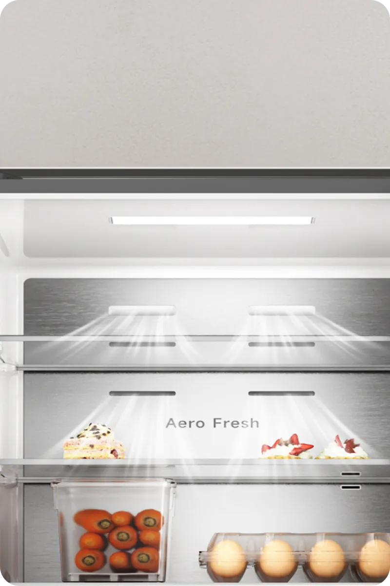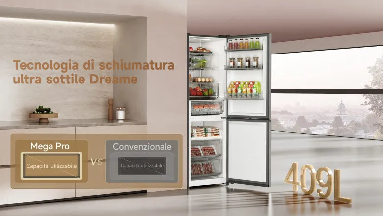 No. Questo frigorifero utilizza la tecnologia No Frost Air Cooling, che fa circolare uniformemente l’aria fredda per prevenire completamente la formazione di brina. Non è quindi necessario eseguire lo sbrinamento manuale, con un notevole risparmio di tempo e fatica e mantenendo gli alimenti freschi in un ambiente controllato a temperatura e umidità costanti.