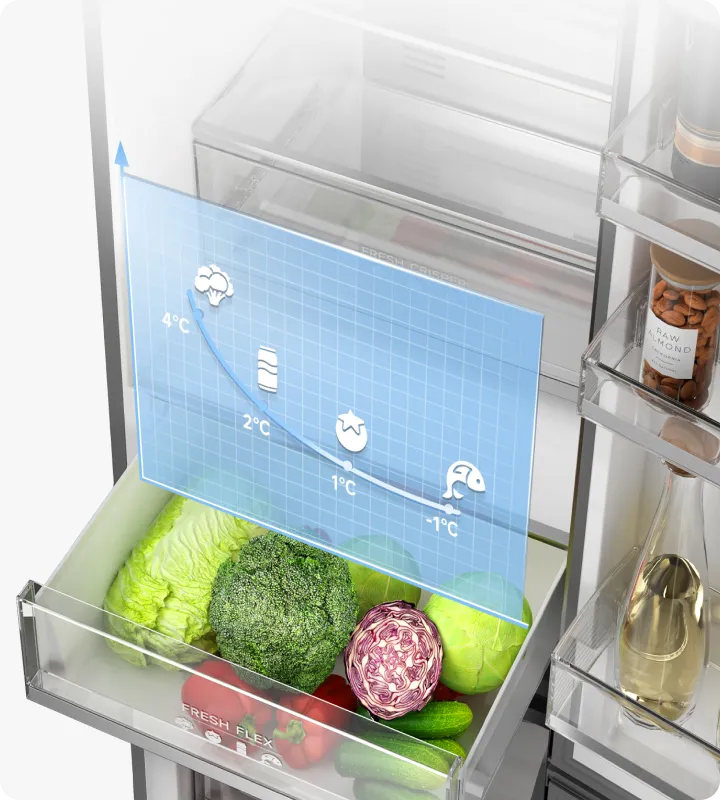 Premere il pulsante FRESH FLEX per regolare la temperatura della zona multi-funzione FreshFlex.