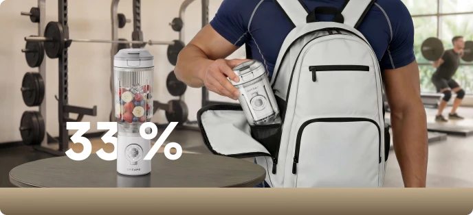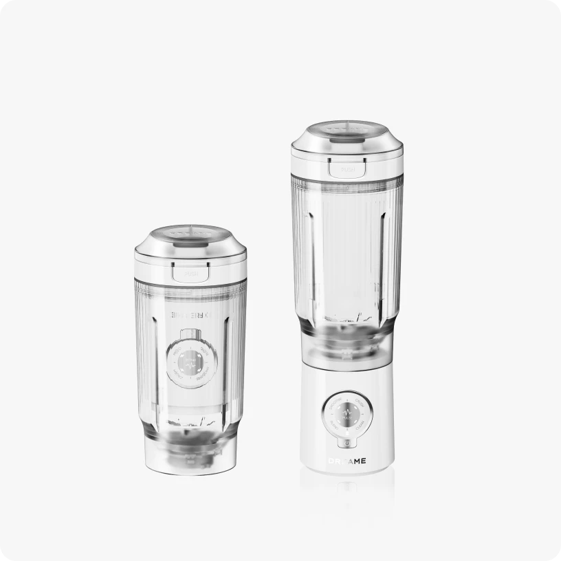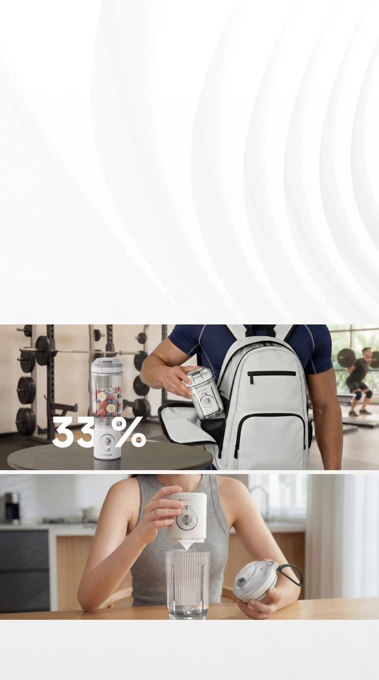 2. 33% più compatto: ~33% di volume in meno quando la base è posizionata all'interno della tazza rispetto a quando è operativo.