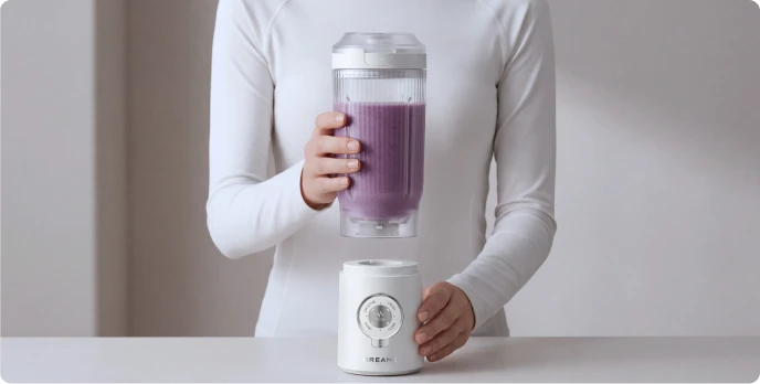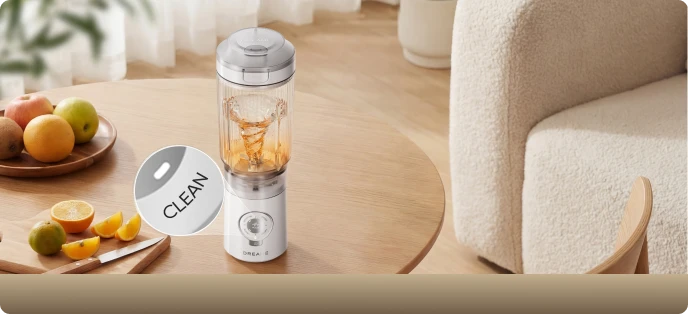 5. Ricarica rapida da 15 minuti per un ciclo di funzionamento: quando la batteria è completamente scarica, una ricarica di 15 minuti fornisce energia sufficiente per preparare la ricetta standard di un frullato (100 g di banana e 150 g di latte).