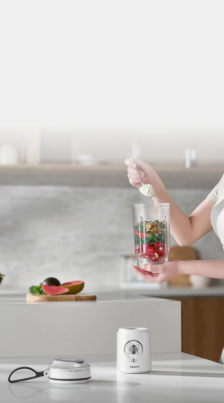 4. Fino a 15 cicli di funzionamento a piena carica: quando la batteria è completamente carica, è possibile frullare 200 g di carote e 300 g d’acqua in modalità BLEND (40 secondi di funzionamento e 1 minuto di pausa) per 15 volte prima che si attivi la protezione per la bassa tensione.