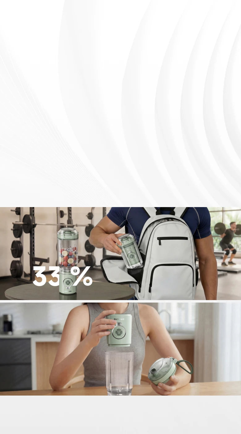 2. 33% più compatto: ~33% di volume in meno quando la base è posizionata all'interno della tazza rispetto a quando è operativo.