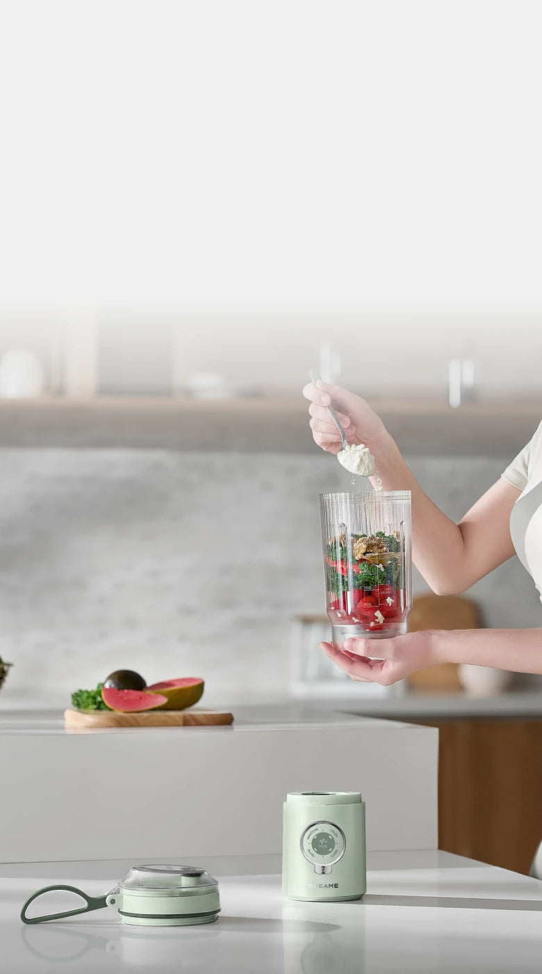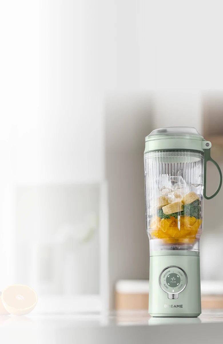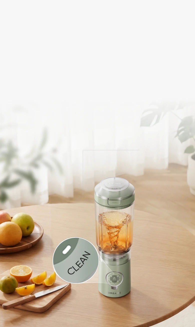 5. Ricarica rapida da 15 minuti per un ciclo di funzionamento: quando la batteria è completamente scarica, una ricarica di 15 minuti fornisce energia sufficiente per preparare la ricetta standard di un frullato (100 g di banana e 150 g di latte).