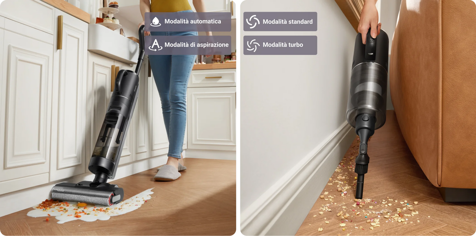 La modalità automatica rileva il tipo di sporco e regola le impostazioni di conseguenza, per una pulizia più accurata.