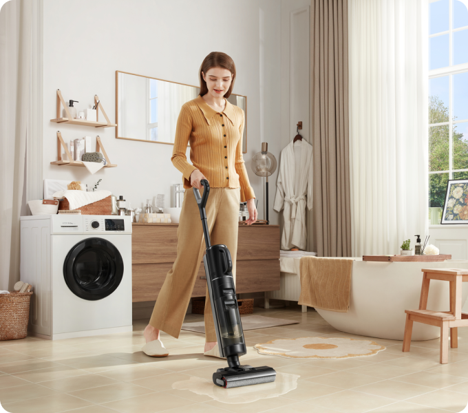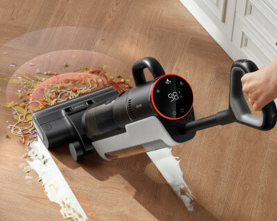 La casa è sottosopra? H12 Dual ti viene in soccorso. Grazie alla potenza di aspirazione da 16.000 Pa, alla spazzola a rullo da 520 giri/min e al raschietto per spazzola integrato, i tuoi pavimenti sono sempre puliti e senza grovigli.